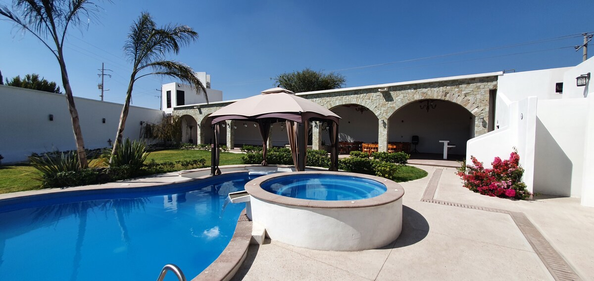 Hermosa Quinta非常適合歡樂或休息,擁有殖民風格,距離美麗的聖地牙哥德克雷塔羅市中心僅15分鐘路程。 享受加熱泳池,或者如果您喜歡全年熱水,這要歸功於其高效的鍋爐(租金不包含燃氣消耗)和24小時水力按摩的按摩浴缸。