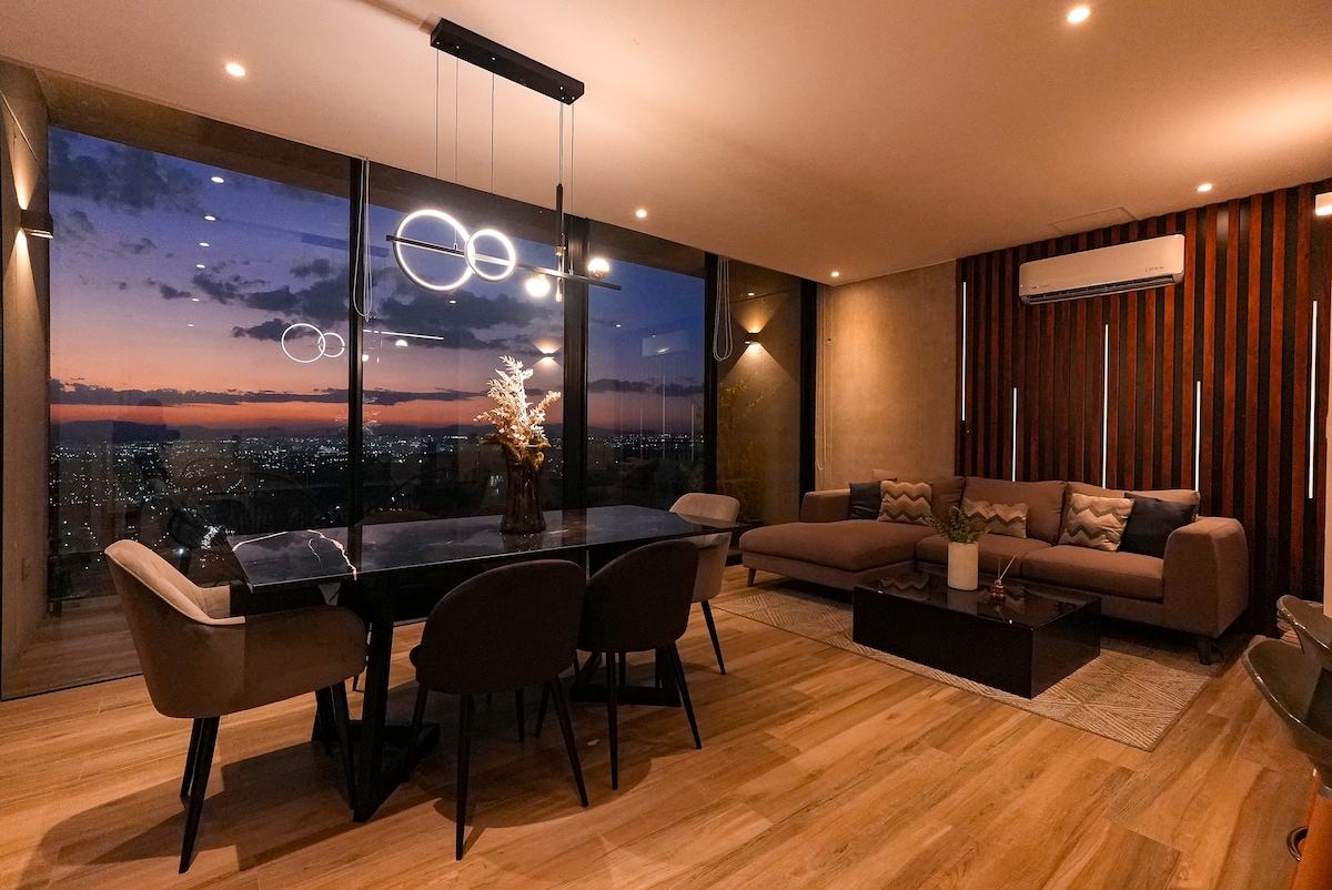 家具齊全的公寓,可欣賞克雷塔羅市的美景,位於戰略區域,交通方便,是安靜和非常舒適住宿的理想選擇。 在按摩浴缸等設備中放鬆身心,同時享受美妙的日落和美妙的住宿體驗。