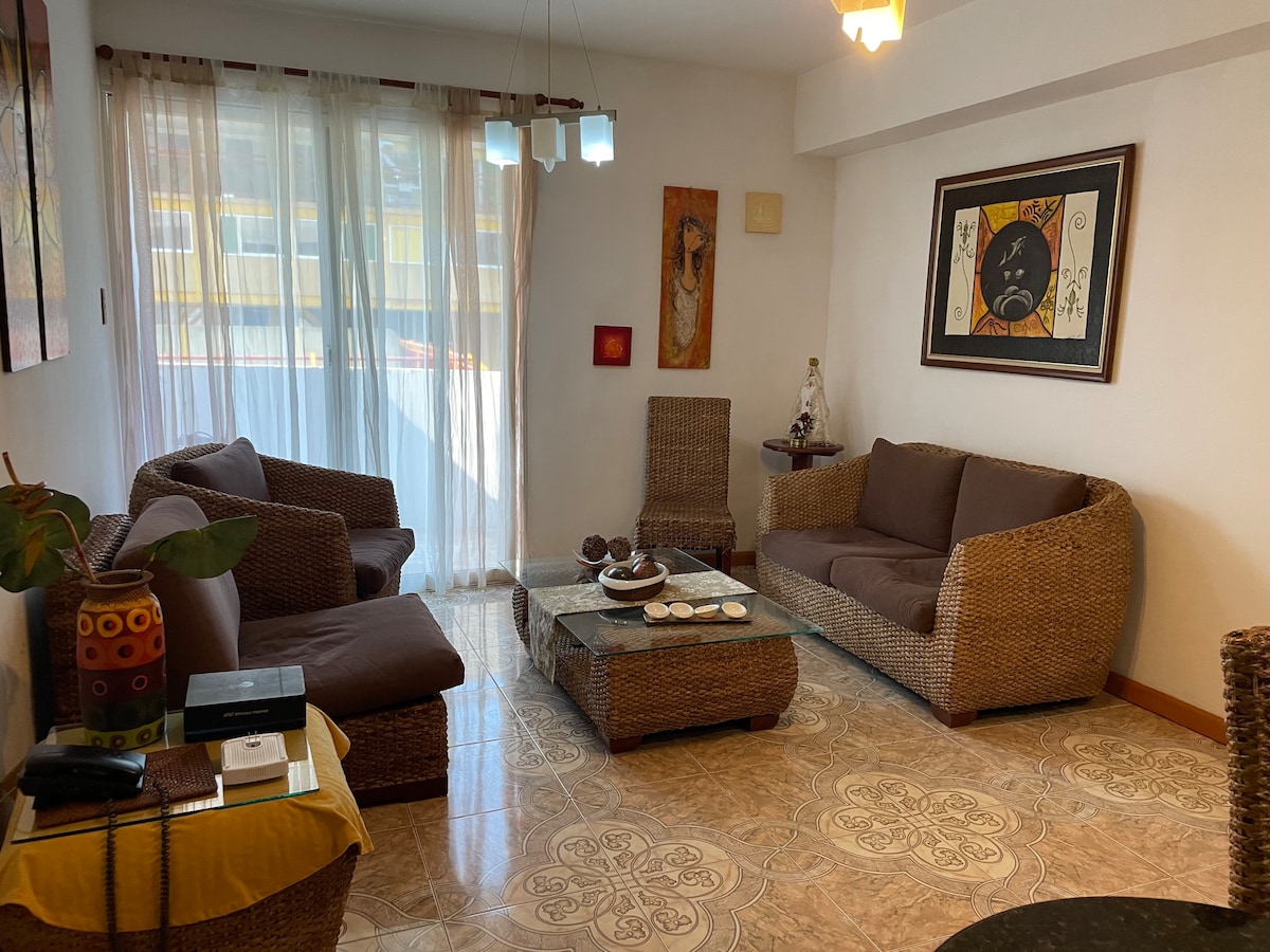入住這間位於市中心的住宿,可俯瞰美麗的日落,您和您的家人和/或朋友將靠近一切。 除了舒適寬敞的公寓外, 2間房間還配有2張牀( 1張雙人牀和1張標準雙人牀) ,客廳配有沙發和餐廳。 設備齊全的廚房和洗衣區,房間配有牀單、沐浴露和衛生紙。 在私人陽臺上,您可以在戶外享受愉快的夜晚。