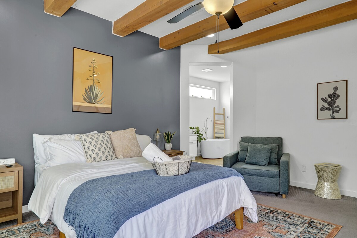 準備好沉浸在我們舒適的1居室小屋的兼收並蓄的魅力中,小屋坐落在曼哈頓高地古樸的歷史街區,位於埃爾帕索市中心! 這裡不錯有趣和刺激的事情:從戶外娛樂、博物館、現場娛樂、熱門餐廳、酒吧和夜生活場景。 我們房源以東的一個街區是風景如畫的紀念公園,周圍有室內泳池、網球場、公共圖書館和美麗的自然風景。