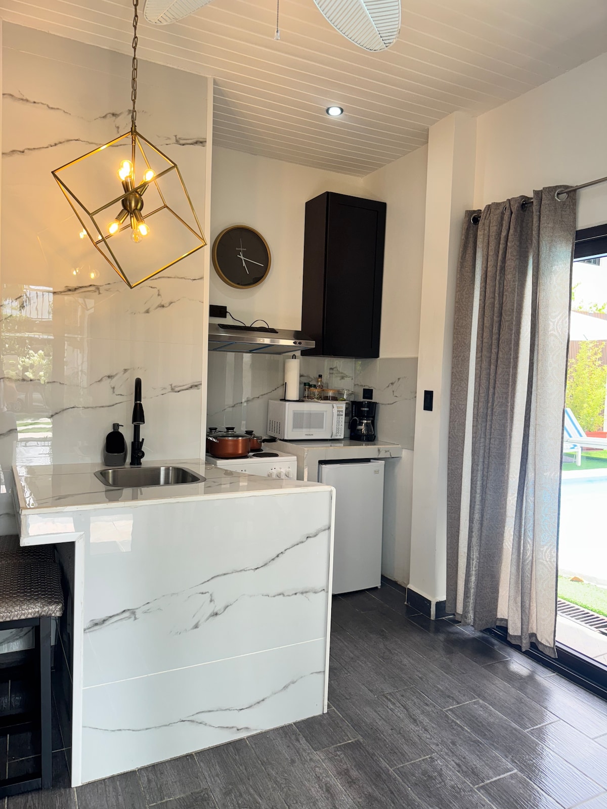 這間美麗的小木屋Teamara是尋找安靜休息或使用標準雙人牀工作的兩個人的完美空間。 電視、設備齊全的廚房和工作區。 🏊泳池開放時間為上午8:00至晚上10:00。 🚗 泊車位在外面 請🚫 勿造訪。 👮我們要求提供同行人士的身份證明文件圖片。 ⚡️它沒有發電機。 考慮所有法規