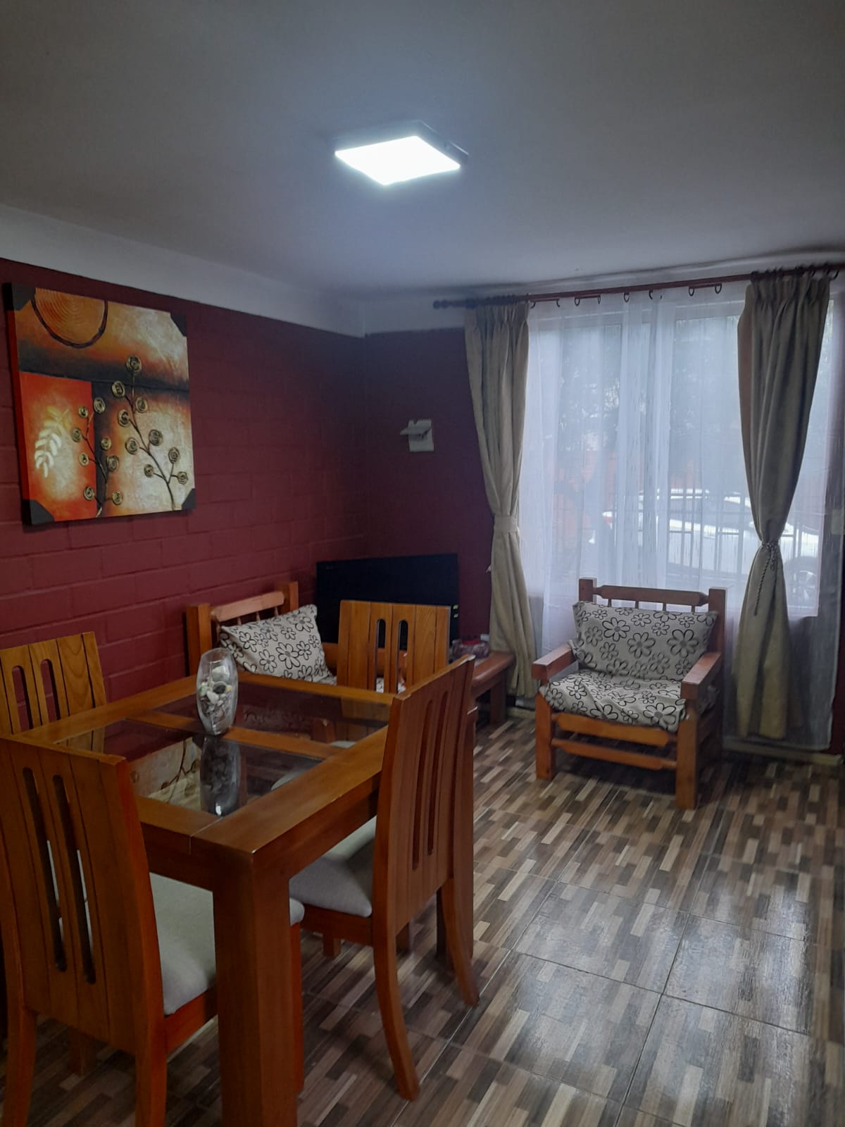 Acogedor departamento interior, independiente, cuenta con 1 cama de dos plazas, cómoda, velador, lámpara, baño y cocina, agua caliente (calefont), cocina equipada con refrigerador, hervidor de agua, cocina con horno, horno microondas, utensilios. Comedorcito para dos, para servir los alimentos o trabajar en computador. Zona WIFI. Un amplio quincho techado y una pequeña piscina, una mesa de ping pong para los más deportistas. Es un lugar tranquilo, con jardines, cercano al centro.