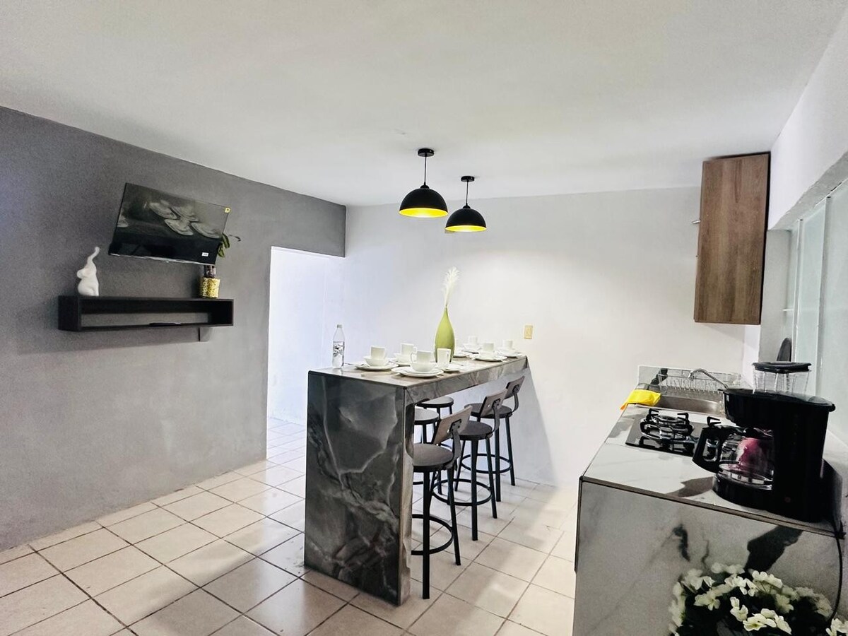 Punto Centro 提供: 1 間配有加大雙人床的臥室 👑 1 張雙人床 廚房 餐廳 庭院 陽台 一間半浴室 我們位於亞瓦利卡市中心,距離花園半個街區 🪴