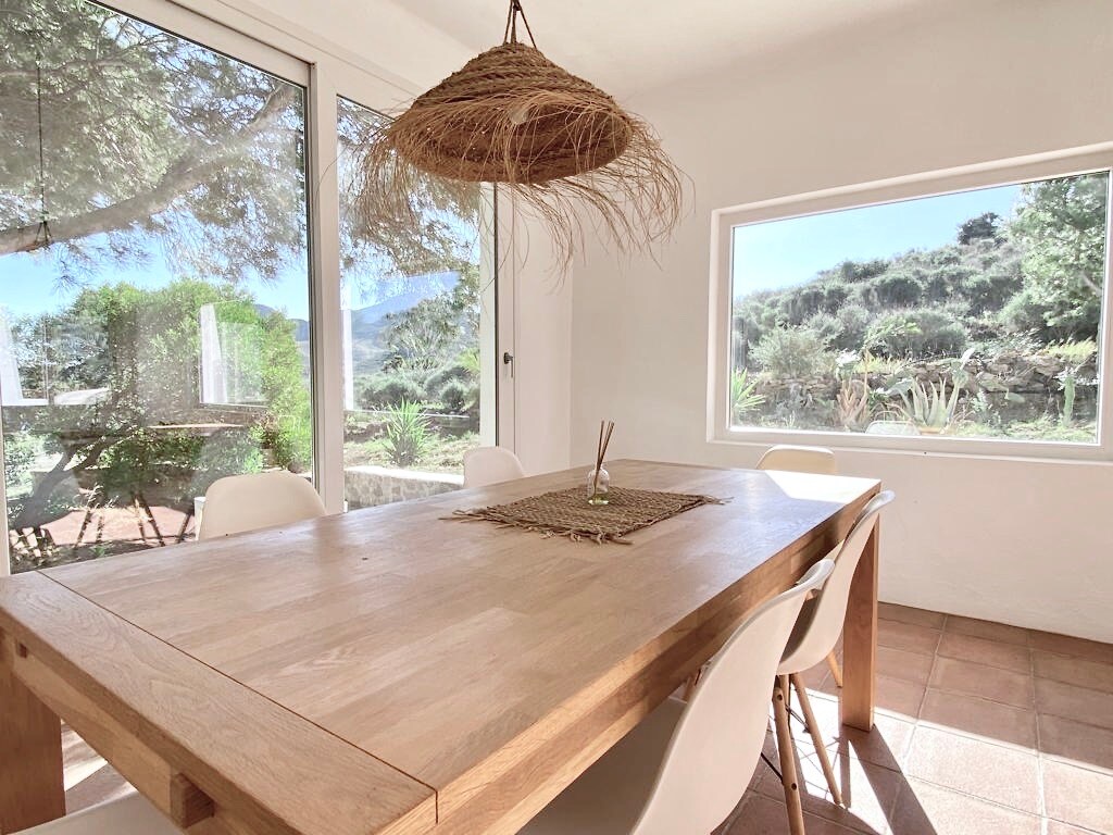 Casa con encanto y original, restaurada como nueva, bien iluminada ,en zona calma a sólo 5 minutos caminando de la playa y las comodidades del centro del pueblo de Las Negras, terraza con vista al mar, jardin acogedor protegido del viento, salón espacioso, lavadora exterior, parking cómodo. Casa con todo el confort: aire climatizado, calefacción, mosquiteras, wifi, cafetera, cocina equipada, sábanas y toallas...todo está nuevo (colchones, sofá cama, cocina, ducha, baño, lavadora)