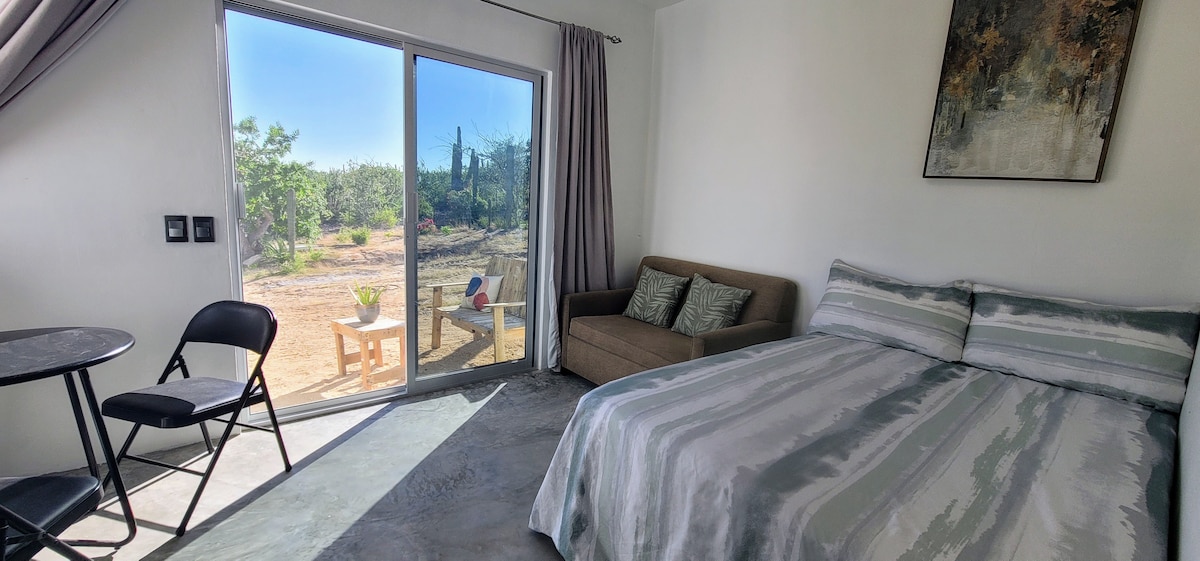 El Sargento的大型單間公寓,在這個寬敞安靜的地方工作和玩樂,開車前往市鎮/海灘僅需7-10分鐘。 環保、太陽能、熱水淋浴、水壓強勁、離網而不犧牲舒適度、快速 Starlink WiFi,非常適合家庭辦公。 位於Cardon森林中間,周圍環繞著大自然,遠離城鎮噪音,是休息和放鬆的理想選擇,欣賞科爾特斯海的迷人景色。 在牀上觀賞日出,晚上觀賞星空 額外的室外淋浴和燒烤。