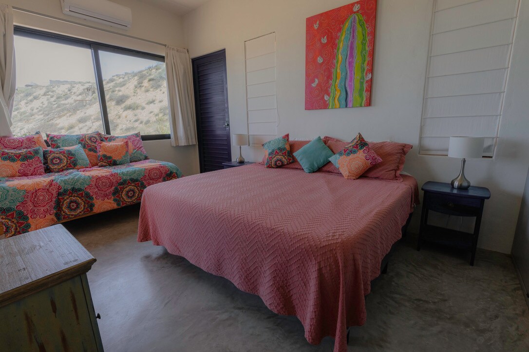 This beautiful ocean view 2 bedroom villa offers a king size primary suite and a full bed in the secondary bedroom. It is one of 13 villas and suites on the property. It offers guests privacy with all the amenities of the resort. This 983 square foot villa welcomes you with a living room and kitchenette where you can prepare meals if you like. It has it's own pool and jacuzzi and easy beach access. Location: We are about an hour south and east of the LaPaz airport. Flights to LaPaz are common and transportation to the estate can be arranged. Cabo San Lucas International airport is just 2.5 hours south of the estate and offers more travel days/times than LaPaz. Transportation can be arranged from Cabo also. Both airports offer rentals cars and the drive is quite and relaxing. Los Planes is the closest town is located about 20 minutes from the estate. Here you can purchase basic supplies. Beach: We have about 1.5 miles of soft white sandy beach. It feels like you are the only person to have ever set foot on this part of the world. The walk out to the sea is a gradual descent into the clear blue water. The sea is calm and you don't have to worry about the current or undertow as there really isn't one. If your back is to the estate and you are facing the Sea of Cortez, there is a coral reef just to the right and on the far left (about 1.5 miles away) is a boat ramp. You can catch the sunrise every morning over the beach and sea. It is a peaceful way to start your morning with your cup of coffee. Snorkeling: The reef located just to the right of the property is home to a wide variety of tropical fish. The reef under the sea is full of color. You won't get bored and see something new every day. So bring your mask and fins for a jaw-dropping experience! Kayaking/SUP: Since the Bay of Dreams is so tranquil, it makes for a great place to take out our kayaks or stand-up paddle boards. The gentle waves make for a smooth ride and you will practically have the bay to yourself expect for the meandering pelicans. If you want to add more memorable experiences to your stay, our concierge service will help set up spa services, kiteboarding, water sports and deep-sea fishing. Kite Boarding: La Ventana is a 40 minute drive and known for its amazing Kite Boarding. You can see 100's of kite boards in the water at once. Make this a day trip and sign up for kite boarding lessons, rent a board and grab some lunch before heading back to the estate. Fishing: This area is known for its sport fishing. Some species are catch and release and others allow you to take your haul home. Fishing in the Sea of Cortez is year-round. Some species you can fish for depending on the time of year: Marlin, Sailfish, Dorado, Tuna, Wahoo, Roosterfish, Cabrilla and Amberjack/Yellowtail. Gran Sueño features the Centro de Trenes Restaurant: An amazing indoor/outdoor dining experience. They have games and tiered swimming pools that look out onto the bay. Centro de Trenes is a spacious event center with a full-service bar and restaurant with fresh salsa and the catch of the day. They serve breakfast, lunch and dinner. The margarita's are lip smacking and the food is spectacular. The real luxury of Gran Sueño is its privacy, and its natural, restorative energy. The estate is warm and inviting, the staff is welcoming and you will be planning your next trip before your toes leave the sand! Access to all Gran Sueño amenities - Main Pool and Jacuzzi - Beach Club w/ restrooms - Beautiful white sandy beach - Gym contains free weights and elliptical machines - Cinema Room is equipped with Apple TV - Restaurant on Site has full-service breakfast, lunch, dinner and drinks