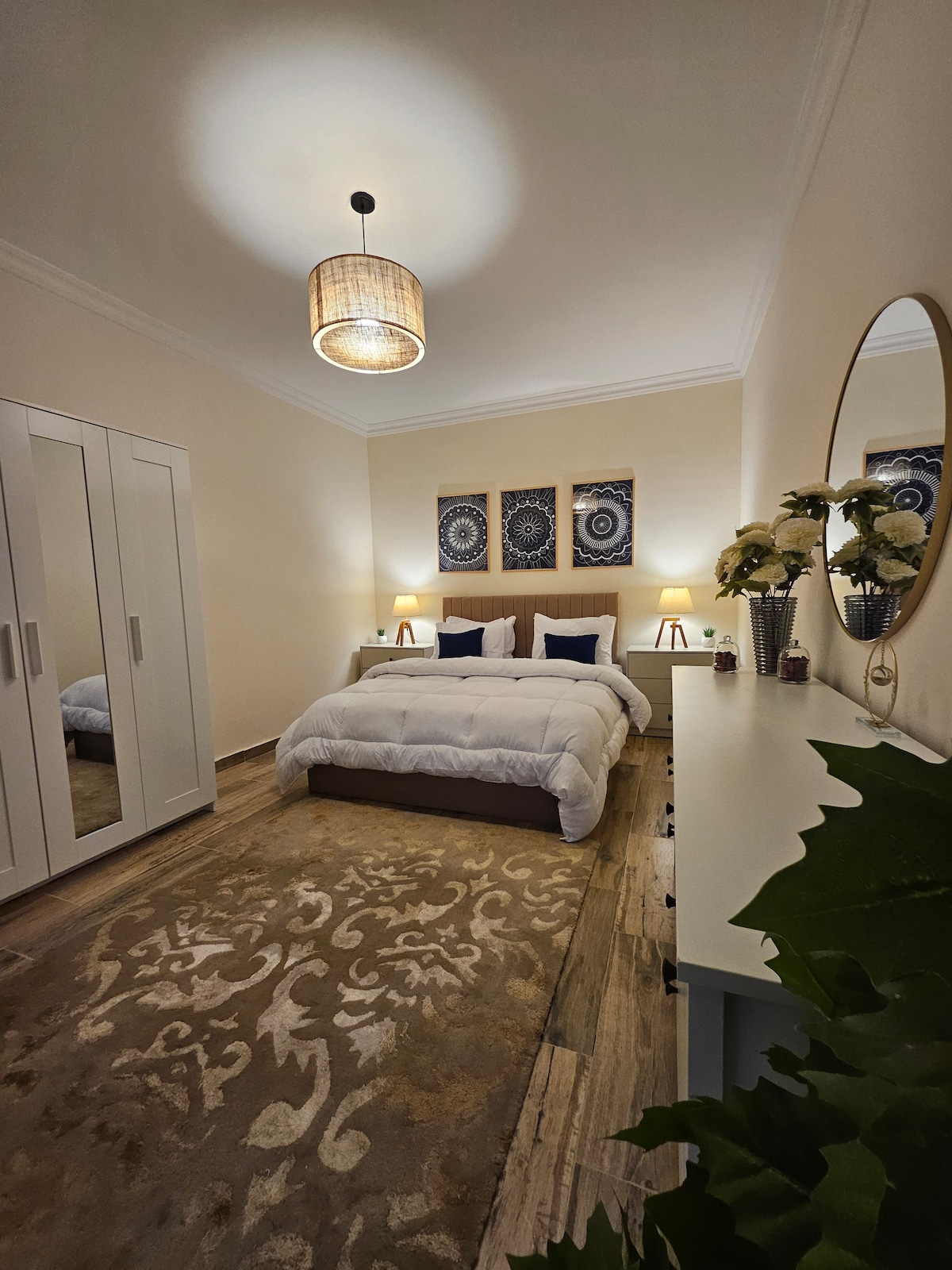 豪華服務式公寓 🌟 ✔️ 豪華現代裝修 優雅舒適的✔️傢俬 公寓✅詳情: • 3間舒適且設備齊全的睡房 🛏️ • 接待處寬敞,裝飾優雅 🛋️ • 現代化衛浴 • 整合式廚房 • 所有房間均設有冷氣 ❄️ • 高速互聯網 🚀 其他✅ 特色: • 靠近所有服務的安靜而獨特的位置 • 24小時保安,保護和私隱 ✅ 鄰近最重要的商場: • Arkan Plaza • Capital Business • 畫廊40 • 7月26日主題 適合: 家庭 • 尋求舒適和私隱的旅人 抱歉,❌我們無法接待外部訪客 💃
