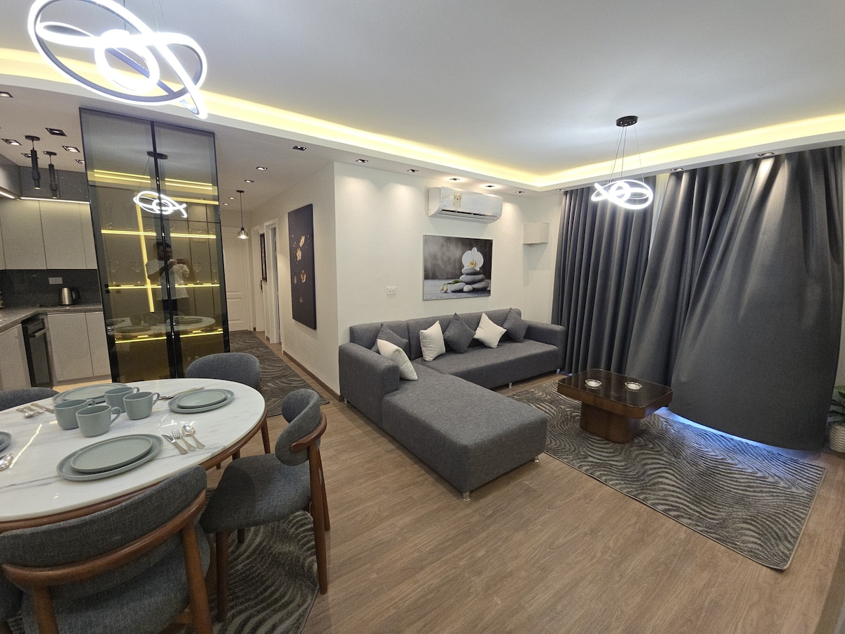 入住這間位於馬迪納蒂( Madinaty )市中心的現代化雙臥室公寓,體驗舒適和時尚。 非常適合家庭和商務旅客,擁有寬敞的房間、設備齊全的廚房和舒適的起居區域。 享受高速WiFi、智慧電視和寧靜的陽臺景觀。 位於黃金地區,前往商店、餐廳和公園都很方便。 安靜的度假勝地,提供所有必需品,讓您放鬆入住。 立即預訂,享受無煩惱的體驗!