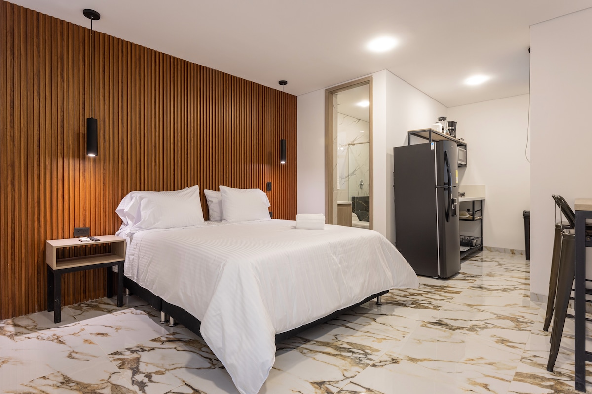全新建築( Hotel Urban Studios )和豪華公寓位於El Poblado ( El Tesoro )的最佳區域,是您尋找寧靜美麗的空間的完美選擇。 -豪華室內設計、家具 -客廳、臥室和辦公室的壯麗景色 -全套洗衣機和烘乾機 -臥室內有空調 - 55英智慧電視LG - 200GB + Wifi -加熱泳池和按摩浴缸 -蒸汽浴室 -全現代化健身房- 24小時保全