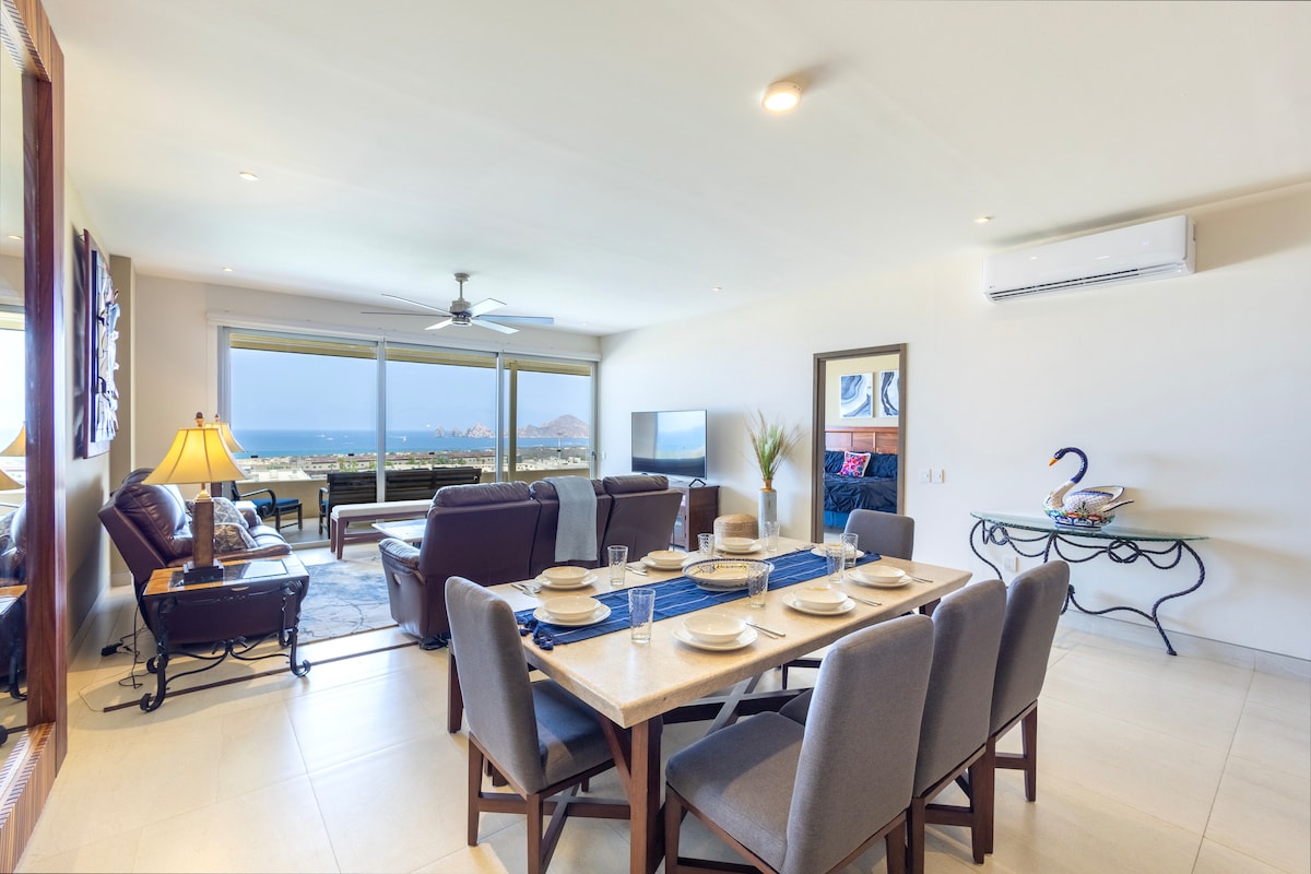 ¡Tus mejores vacaciones están aquí! Este es un excelente condominio de 3 dormitorios que tiene una vista perfecta del mar y del arco desde la suite principal, el balcón y la sala de estar. Disfrute y relájese en nuestro alojamiento con muebles cómodos, una cocina totalmente equipada y excelentes áreas compartidas interiores y exteriores. Con comodidades estilo centro turístico y proximidad a las atracciones del centro y a La Marina, este es el mejor condominio para su escapada a Cabo.