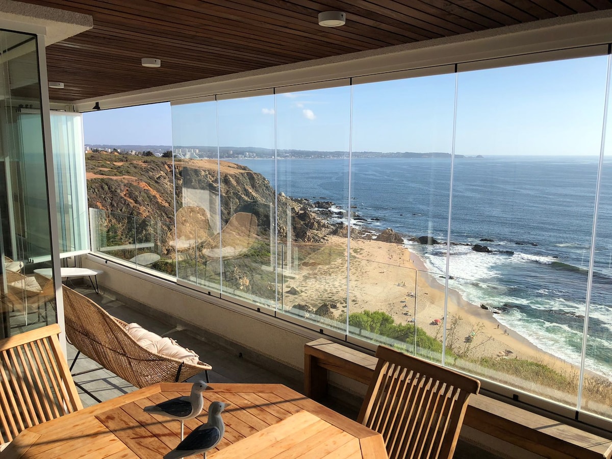 Moderna casa en Tunquén, con amplia vista al mar.
