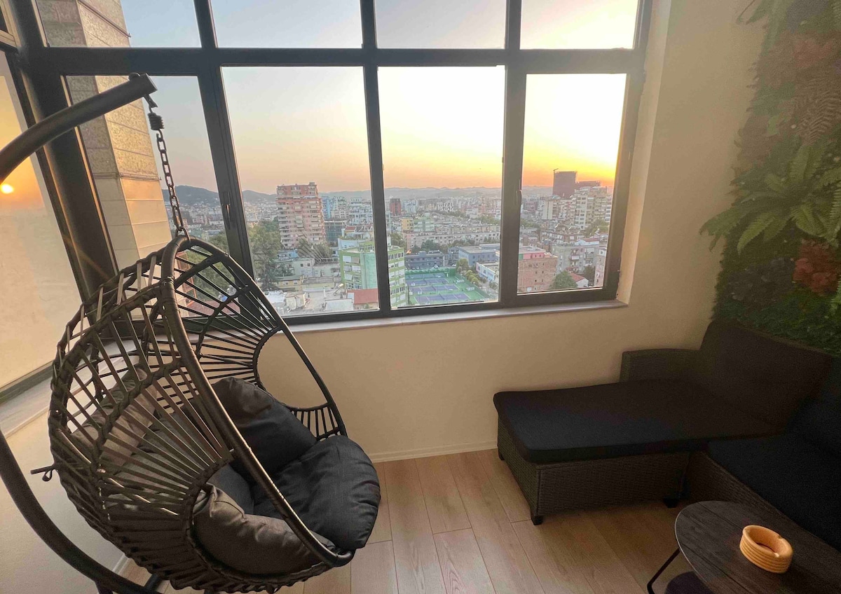 Experience history & modern comfort in our top-floor apartment nestled in the iconic Shallvaret building. Located in the heart of Tirana, you'll be steps from popular bars & must-visit attractions. Enjoy privacy while staying in the city's pulse. With captivating views from the 12th floor, our spacious balcony is perfect for coffee at sunrise or wine at sunset. Near Tajvani, absorb the old-world charm of the city from the highest point of Tirana's first buildings. Your urban sanctuary awaits!