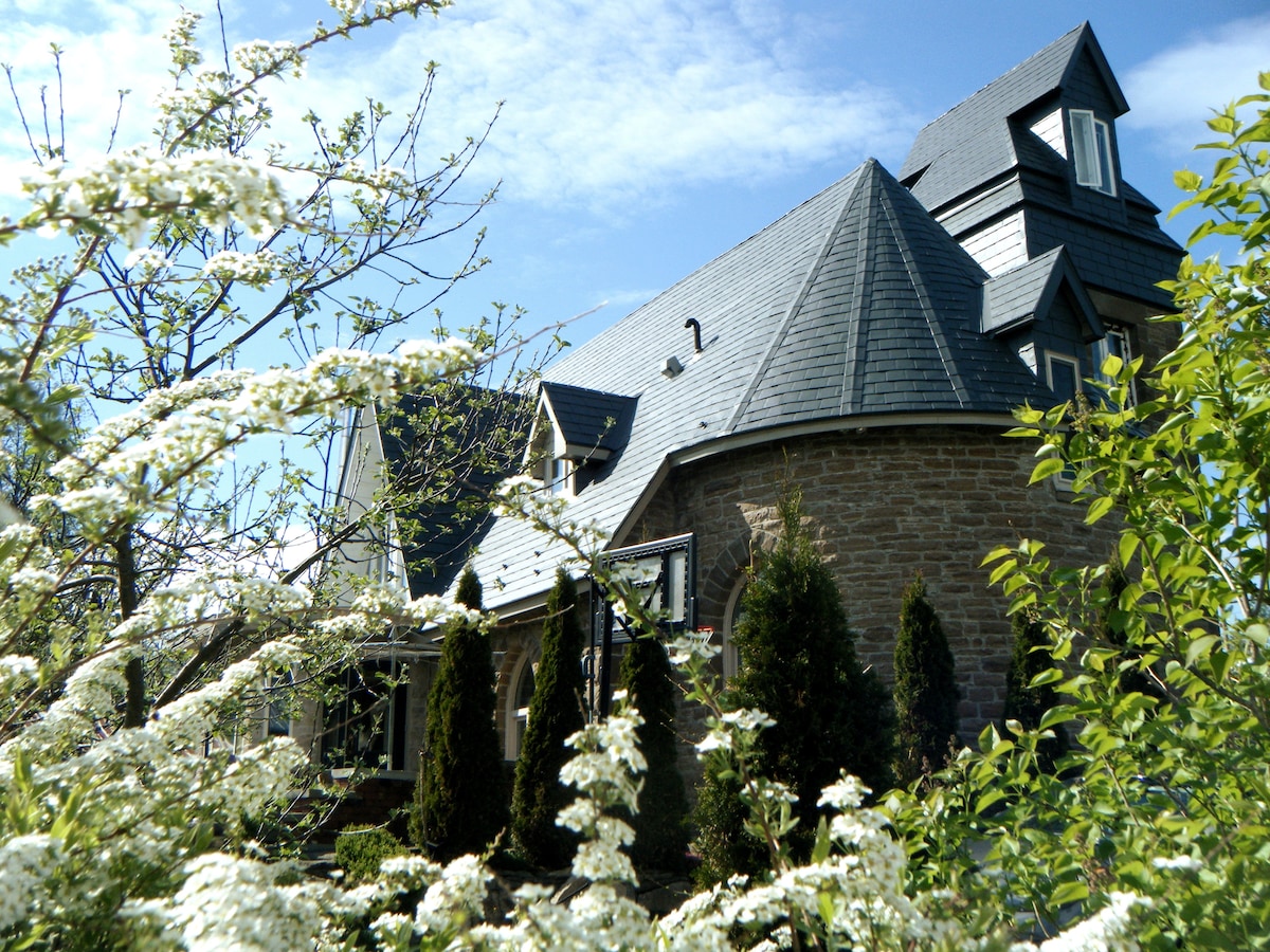 This private, bright, unique and spacious main floor home is custom designed and built into a 1900 historic Gothic Stone Church. Located just 10 minutes from downtown Perth or Smiths Falls, it is a perfect setting for authentic travelers and cultural explorers. Experience a beautiful region known for its lakes, rivers, parks & farms. Take art lessons, canoe, kayak, cross country ski, hike, bike or relax & take in panoramic views and experience the best of Lanark County and a country way of life.