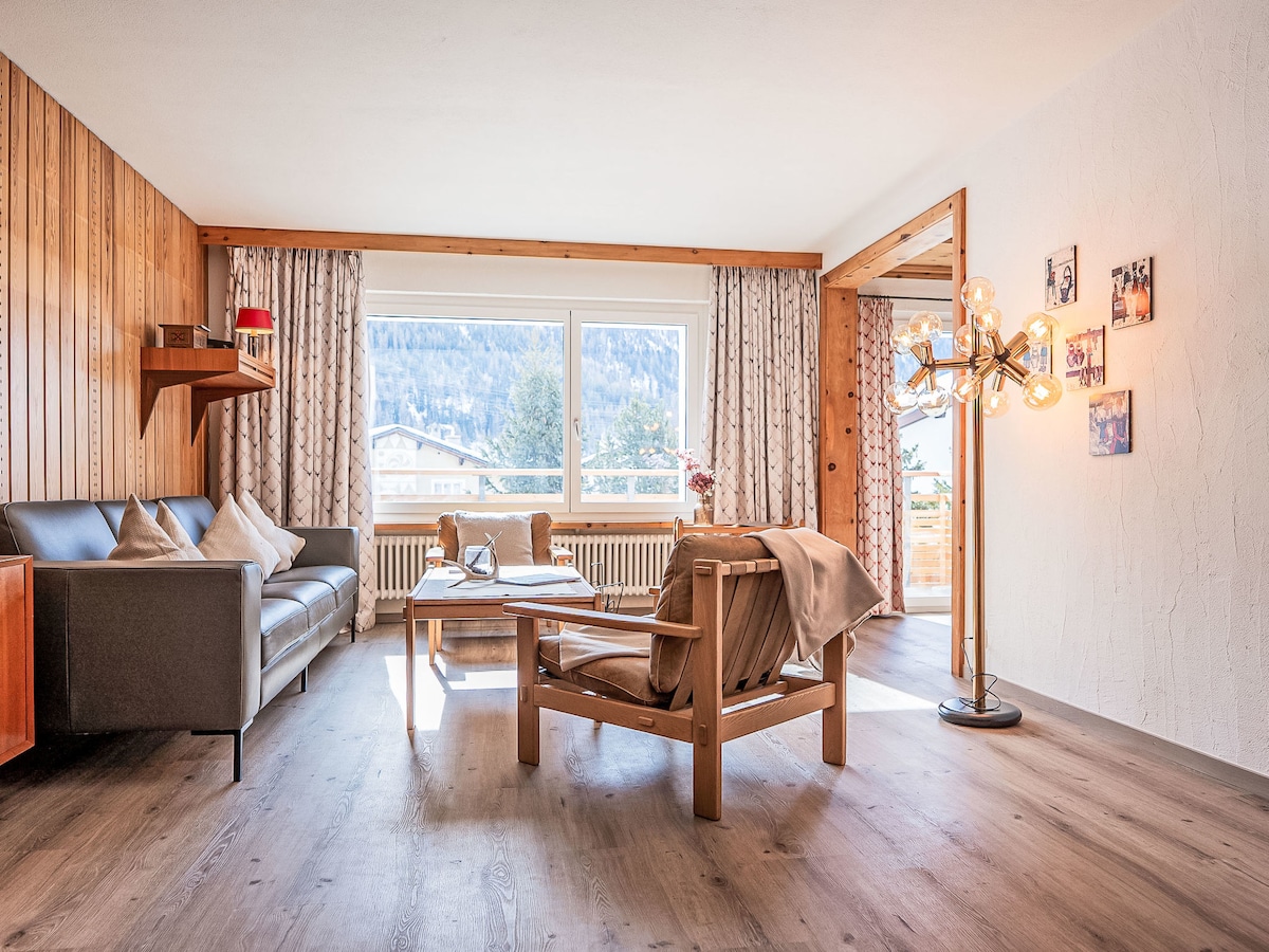 All discounts are already included, please go ahead and book the property if your travel dates are available. Below please see all the listing details "Chesa Vuorcha", 3-room apartment 100 m2, on the upper ground floor. Spacious and bright, partly renovated in 2014, comfortable and modern furnishings: open living/dining room with TV. Exit to the balcony, south facing position. 1 room with 1 double bed (2 x 90 cm, length 200 cm). Exit to the balcony.