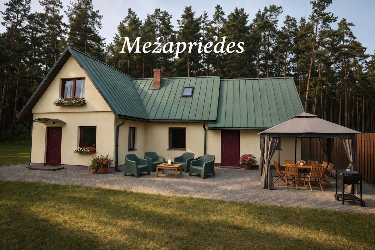 房子有3間臥室、一間有壁爐的大客廳、配備所有必需品的廚房、浴室和兩間廁所。 這個房源非常適合家庭或朋友入住,讓您放鬆、玩得開心,並花一些時間親近大自然。房子就在森林旁邊,空間寬敞,讓每個人都有自己的放鬆舒適空間。 附註:為了檢查誰來/去,我們有一個朝向大門的攝影機。:)為了我們和您的安全。