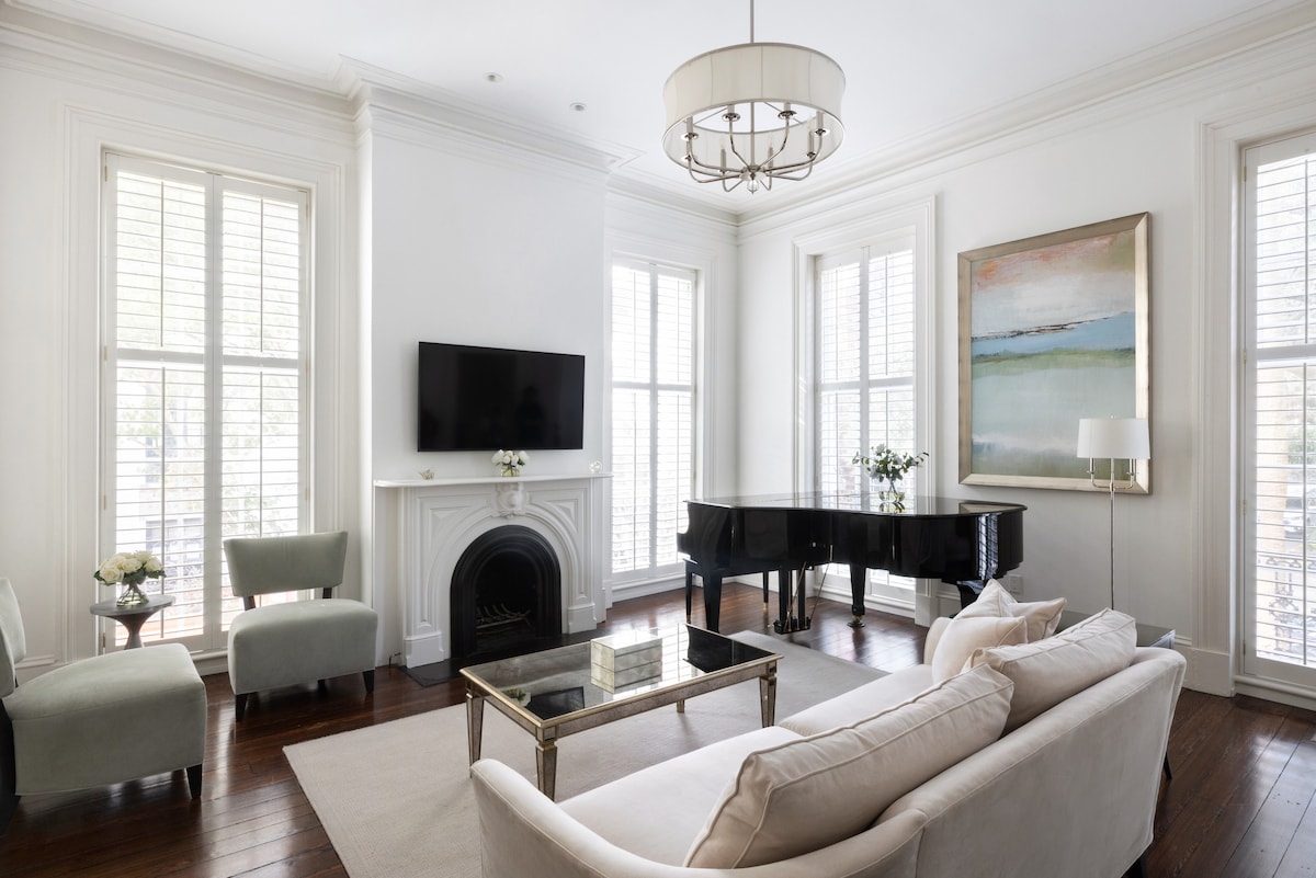 Sun filled Parlor in an elegant mansion dating back to 1850. A true gem on Jones Street, referred to as "one of the most beautiful streets in the U.S". Soaring high ceilings, marble fireplaces, floor to ceiling windows looking out to a historic cobblestone street. Walking distance to all downtown has to offer, quiet and peaceful. Very lar tv with premium cable. New king bed. Laundry room with washer and dryer. Perfect to "work from home" with comfortable desk, high speed wifi. No pets. SVR-02203