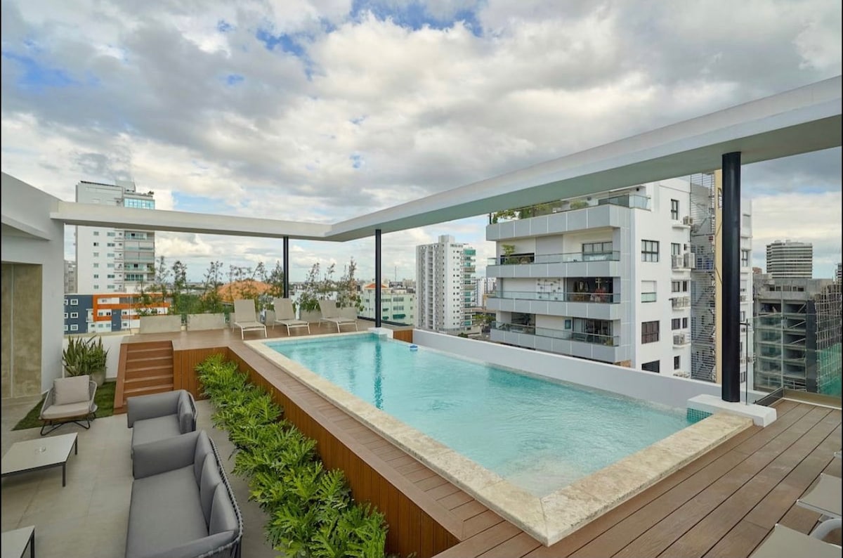 入住這間位於聖多明哥最獨特地區皮安蒂尼 (Piantini) 的現代 2 房公寓,體驗奢華生活。周圍有頂級餐廳、購物中心和娛樂設施,非常適合商務差旅人士、情侶或家庭入住。享受寬敞、時尚的起居空間、可欣賞城市景觀的私人陽台,以及屋頂泳池、健身房和休息區。大樓提供 24 小時全天候前台服務,讓您享受順暢的體驗。