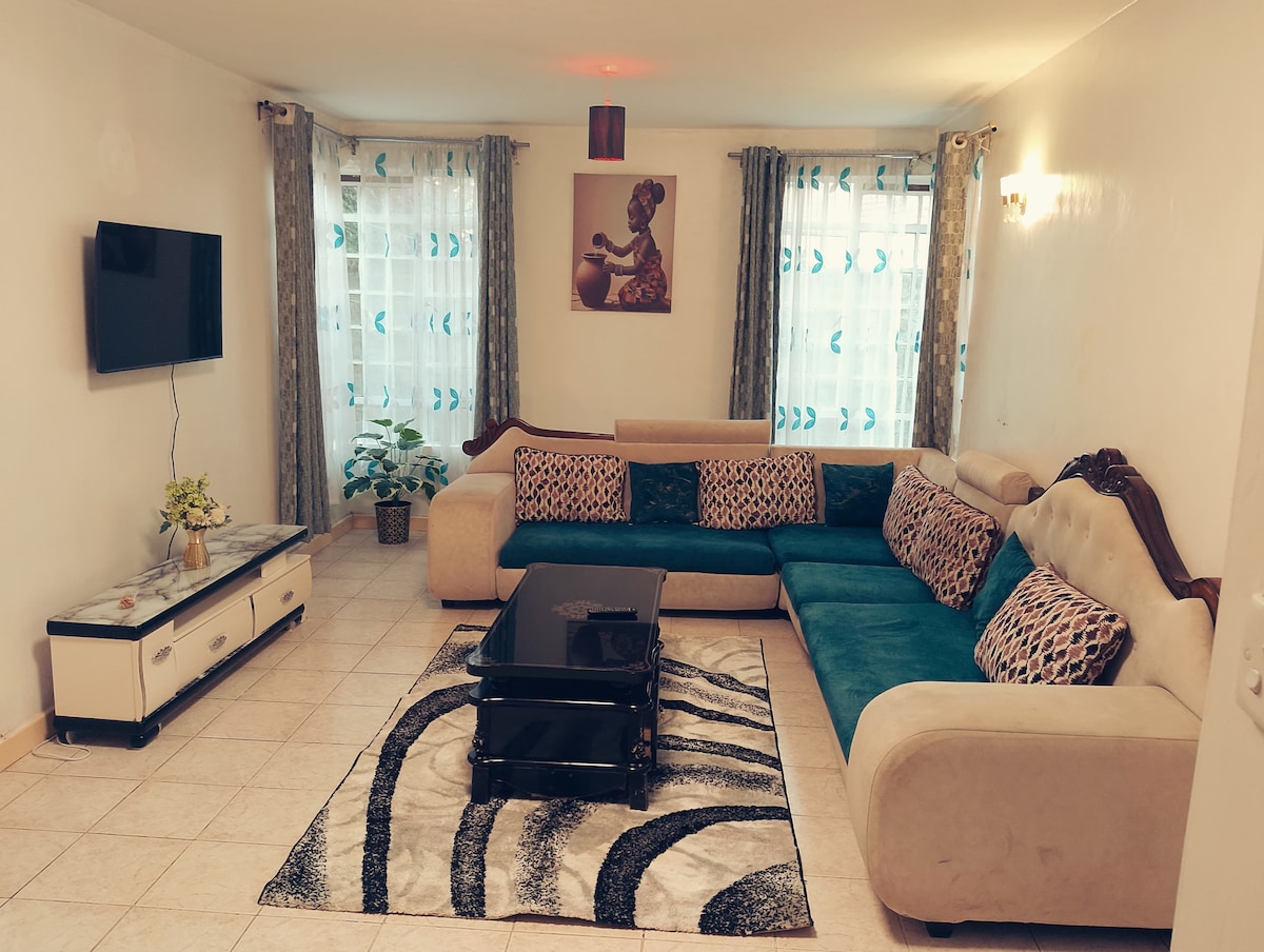 Come and enjoy a quiet, relaxed and peaceful stay in this charming elegant apartment ideally located along Kitengela-Isinya-Namanga Road. It sits within a tranquil environment away from the flurry of the city It is located within Mwalimu Park-Kisaju, it is a gated community & has 24 hour security.