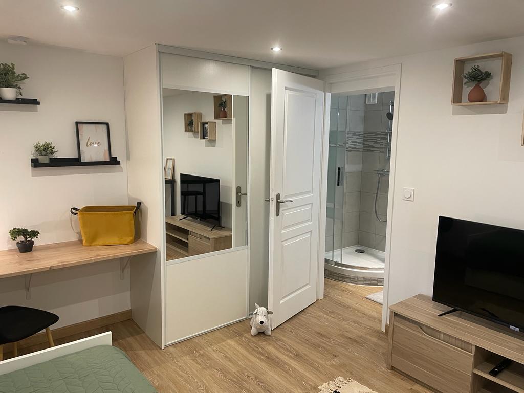 放鬆身心,這間寬敞的住宿空間絕對不會讓您感到空間不足。 寬敞明亮的公寓,由一間臥室和一間大客廳組成。 整套房源都有 Wi-Fi 覆蓋,電視可收看所有頻道(Canal+、RMC、Netflix...)您不會錯過任何電視活動。 雙人床和沙發床。包括床單和毛巾。 廚房配有冰箱、微波爐烤架、電磁爐、咖啡機。 淋浴間和懸掛式廁所。