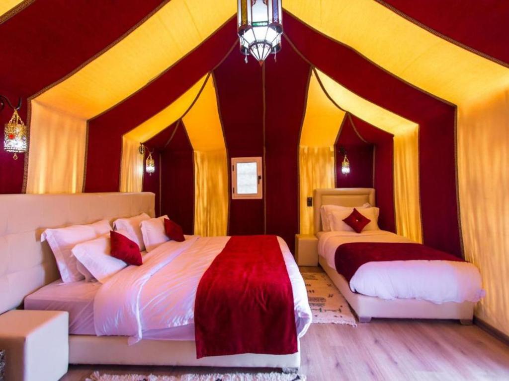 Merzouga豪華沙漠營地配有暖氣我們的豪華帳篷提供現代舒適的傳統柏柏爾魅力,配有套房浴室和迷人的沙漠景觀。 享受駱駝騎行、四驅車之旅,在星空下度過神奇的夜晚。 體驗探險、文化和放鬆的完美融合。