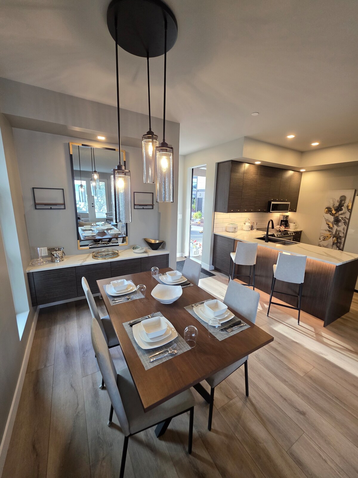 A mountain suite perched above the city and overlooking the Salish Sea. You’ll enjoy the morning sun as it rises over the ocean and city lights as you unwind at night. ★“The pictures do not do justice for how amazing the place & view is!” -Kylene ☞ 646ft² mountain suite w/ 10’ ceilings ☞ Nespresso, French Press & drip coffee ☞ Blackout blinds in bedroom ☞ Ocean view patio w/ fire pit ☞ In-suite washer + dryer ☞ Fully equipped kitchen ☞ Heated Bathroom flr ☞ 250 Mbps wifi ☞ 55” Smart TV