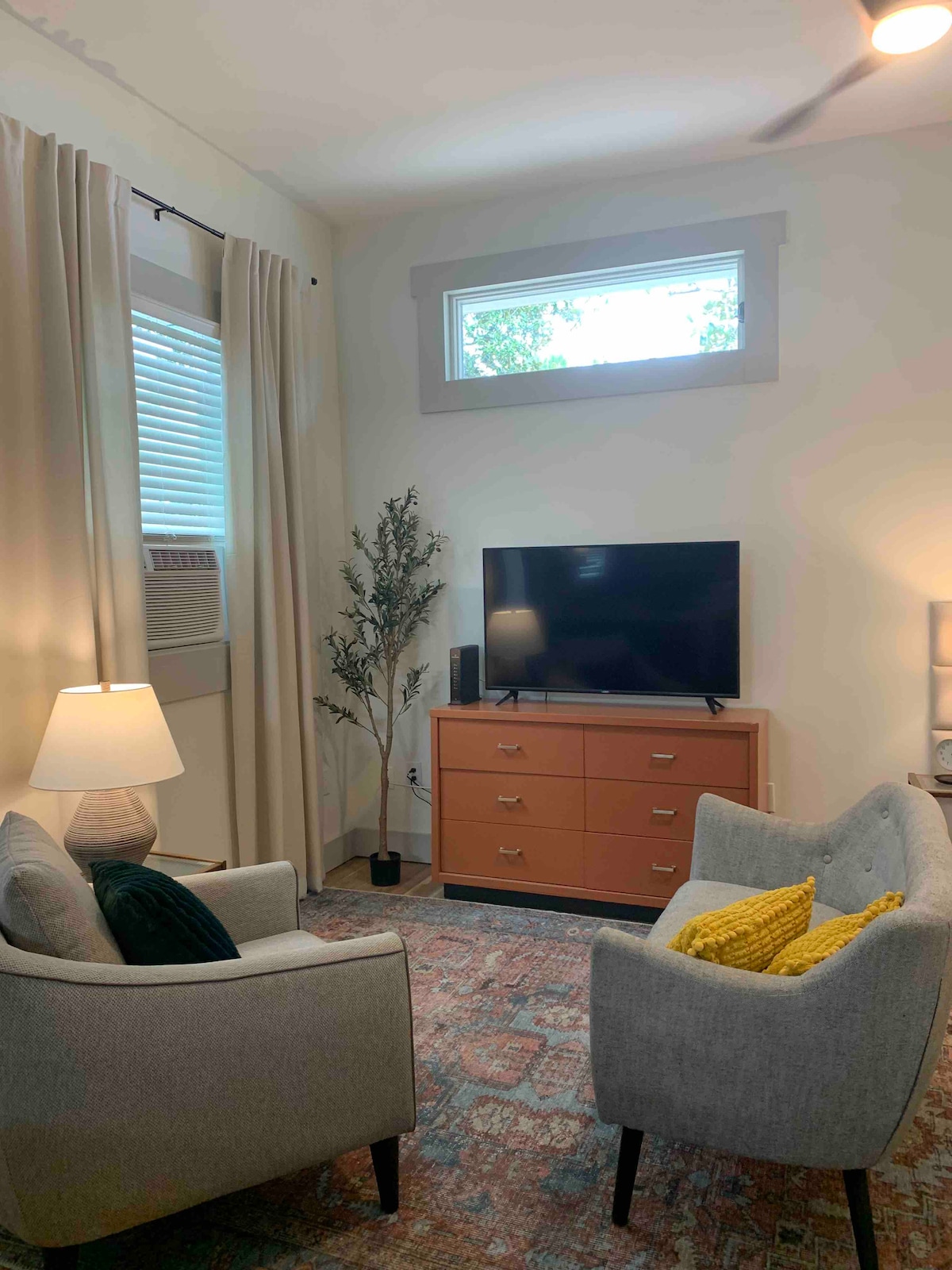 Welcome to Olivia Downtown, your new home away from home! This gem is an 860 sq ft one bedroom one bathroom home equipped with a full kitchen and laundry room. Whether you’re working from the designated office space, snuggled up on the comfiest couch watching some Netflix or cozied up around the fire pit on a chilly night Olivia will make you never want to leave! However, if you do decide to venture out we are minutes away from Pensacola’s best of the best!