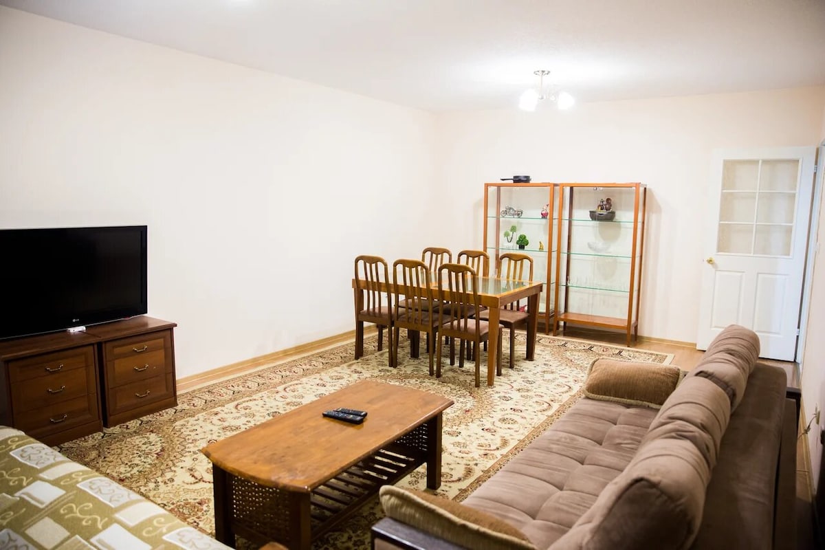 計劃前往哈薩克旅行嗎? 歡迎你入住我們的旅居! 我們是來自阿斯塔納的夫婦,分別叫Svetlana和Viktor。 我們的旅居位於阿斯塔納最好的地區之一,位於河畔步行街附近的右岸。 步行5–10分鐘即可抵達主街、超市、書店、餐廳、肯德基、Hardee 's、Coffee Boom、迷人的棋盤公園和河邊。