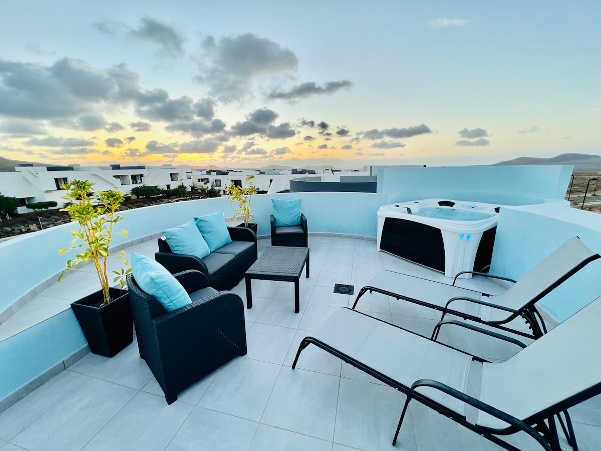 Fuerteventuravvcom JACUZZI® BLUE Vv - Solarium, Panoramic Terrace & JACUZZI With Views of Mountains, Volcanoes, Lanzarote Coast, Isla de Lobos, Lajares, El Cotillo and Corralejo