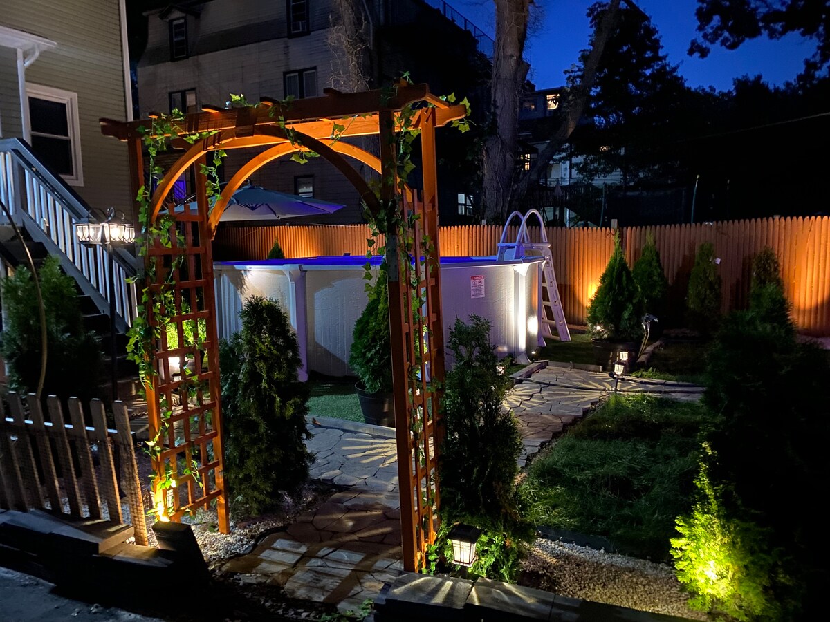距離賓夕法尼亞車站、澤西花園購物中心、餐廳幾分鐘路程,位於私人公寓。最近更新了全新的電器、廚房櫥櫃和地板。在私人後院享受按摩浴缸。設備齊全的廚房、咖啡機。乘坐火車或汽車幾分鐘即可抵達紐約市。距離紐瓦克機場僅3英里。全年可使用按摩浴池。距離新購物中心美國夢/尼克水上樂園僅幾分鐘。保證每次都洗床單。