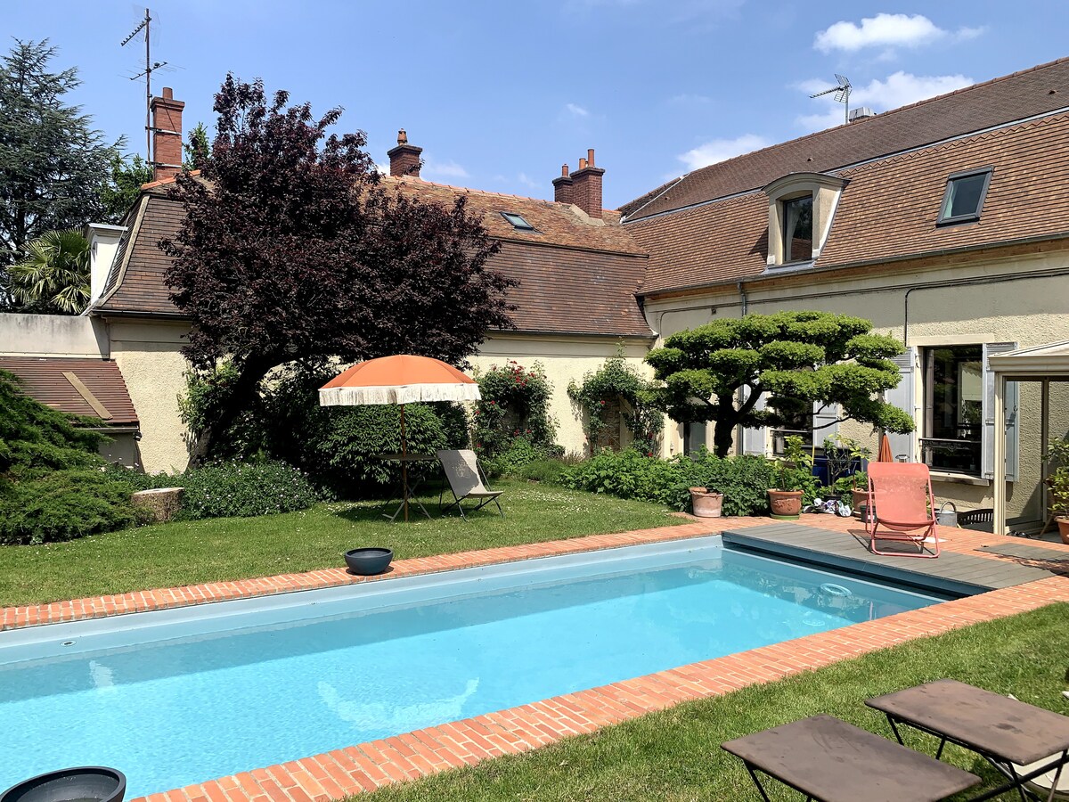 歡迎來到這個古老的中世紀村莊Chevreuse。 如果您願意,歡迎您入住我們傳統的「百年」房屋,配有一張加大雙人床,可使用浴室、廚房和花園,步行5分鐘即可抵達市中心。 坐落在綠色巢穴中,坐落在自然公園的中心,您可以前往建於11世紀的瑪德琳城堡( Château de la Madeleine ) (在森林中步行5分鐘) 巴士和RER前往凡爾賽、巴黎...