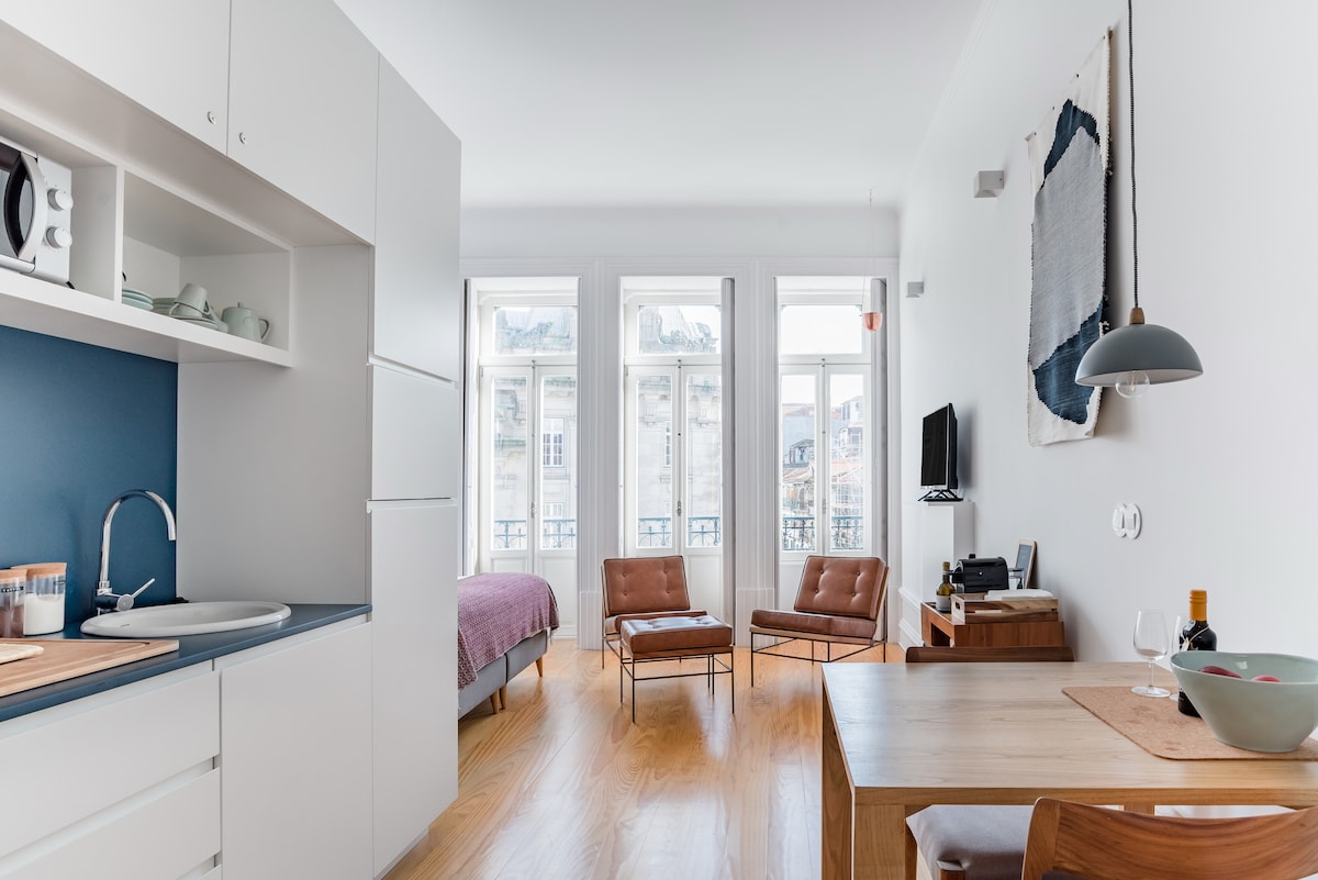 This Studio, in a fully renovated building, beautifully designed and carefully equipped, is the perfect base to discover the hidden secrets of Porto. Perfectly located in Porto’s Historic Center, in the lively and iconic Rua das Flores. Feel the privilege to stay in the middle of all the action and excitement, but still having a perfect quiet rest, since it’s at the back of the building. São Bento Station, Clérigos Tower, Livraria Lello, Ribeira, Luís I Bridge, are all within walking distance!