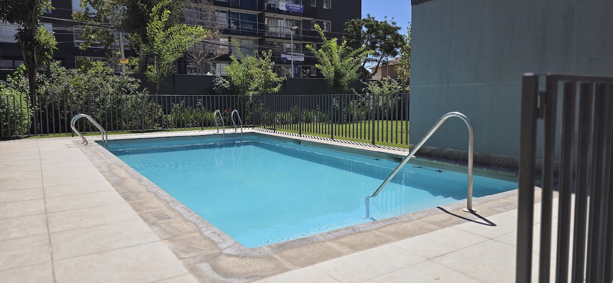 Disfruta de la sencillez de este alojamiento tranquilo y céntrico.Disfruta una estadía moderna en un edificio nuevo en el corazón de Ñuñoa, al lado del Parque Bustamante y a pasos del Metro Irarrázabal . Cuenta con: 1 Dormitorio con cama doble y sofá cama. 2 Cocina full equipada con cafetera Nespresso 3 Baño con tina y amenities. 4 Smart TV con Netflix. 5 WiFi flash de 600 Mbps. 6 Refrigerador moderno. 7 Ropa de cama premium. Fumar solo en terraza (Ley 20.660).