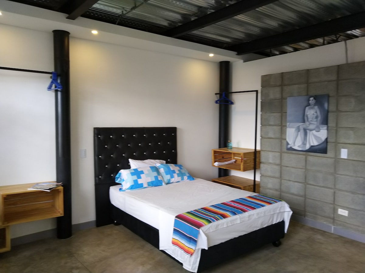 ¡Feliz de recibirte en este hermoso y lujoso apartamento que personalmente he diseñado para tu disfrute, placer y confort! Vive las noches más románticas y/o regálate paz y descanso en este amplio y agradable alojamiento de estilo rústico moderno, con piso de madera, bañera y jardín privado. Posee además un espacio ideal para quienes practican meditación, así como 2 hamacas para tu descanso y para disfrutar en pareja. Tiene un comedor interno y otro en el jardín, al frente de la fogata.