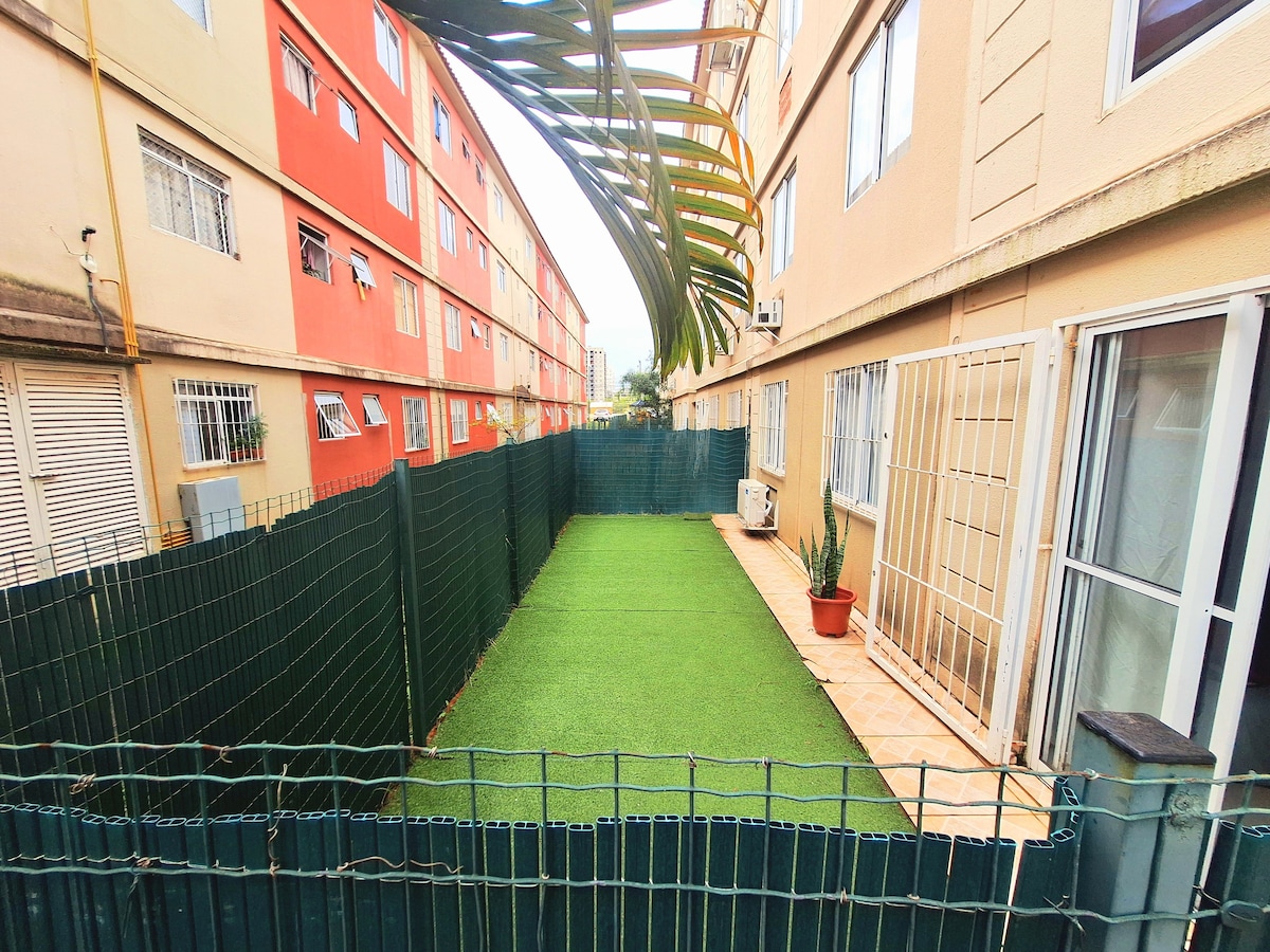 公寓位於Sapucaia do Sul市中心,位置優越,輕鬆前往火車站和主要巴士線路。 火車:30 分鐘到阿雷格里港 附近有餐廳/快餐店、市場、商店和景點。 Sigapay :使用應用程式,可以輕鬆地停在公寓旁邊。 雙人床、冷氣、沙發和電視。全套廚房,配有冰箱、微波爐和一般餐具。一切都非常新。 有安全門和電梯。