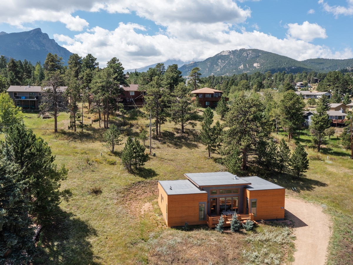 歡迎來到Whispering Pines ,這是一個獨特的房源,其建築與Estes ( 21-ZONE3019 )的任何其他建築都不同。我們的家庭住宅坐落在距離市中心和國家公園僅幾分鐘路程的住宅區,景觀寬闊,時尚別緻。非常新的建築! + 1gb 光纖網路 +瓦斯壁爐、智慧電視 + 2 張特大雙人床、1 張雙人床 + 2個露臺,配有烤肉架 + 1間臥室有套房浴室 +幾分鐘即可抵達徒步旅行、國家公園、高爾夫球場、餐廳和城鎮。 最多可入住 6 人!