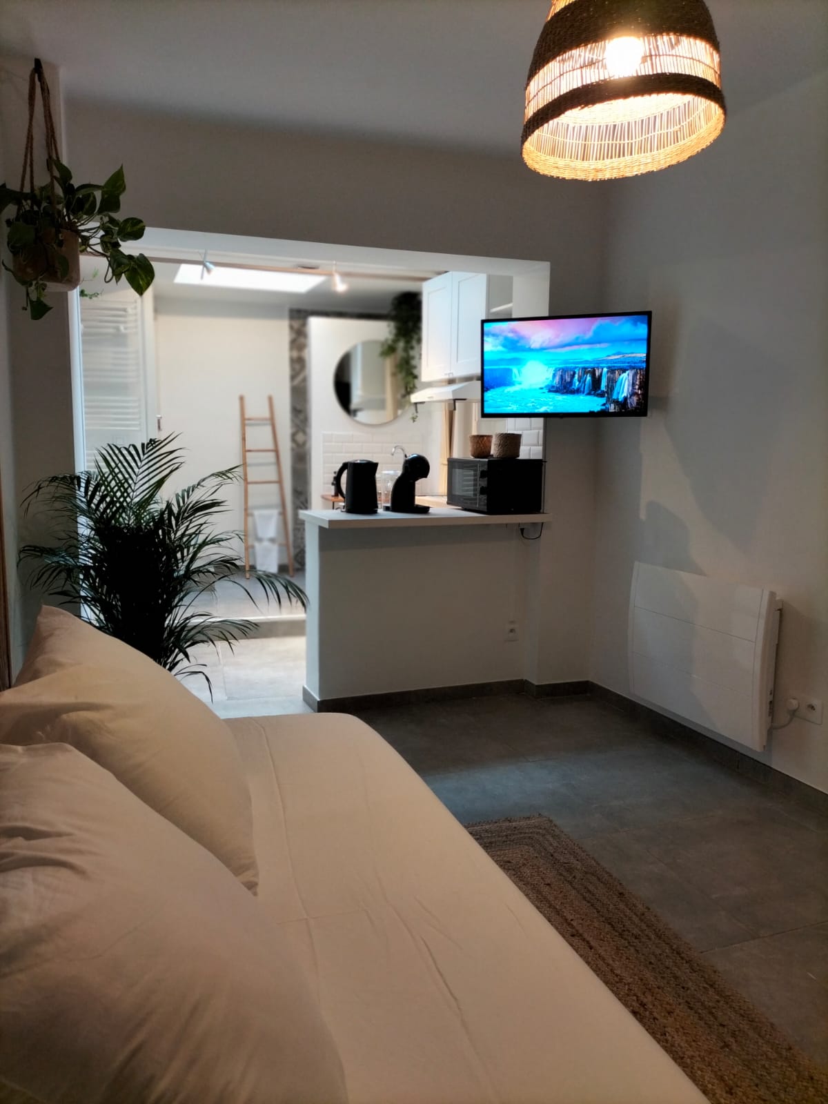 這間小住所位於蒙斯市中心(距離大廣場僅幾步之遙),迷人而溫馨,將在您入住期間為您提供服務。它位於一棟由三個住宅組成的建築物的一樓。 它有一張加大雙人床(180/200)。 您會發現所有的舒適設施(dolce gusto 咖啡機、電熱水壺、微波爐/烤箱 2 合 1、電磁爐、WiFi、Android 電視棒) 浴室由淋浴間、洗手台和廁所組成。