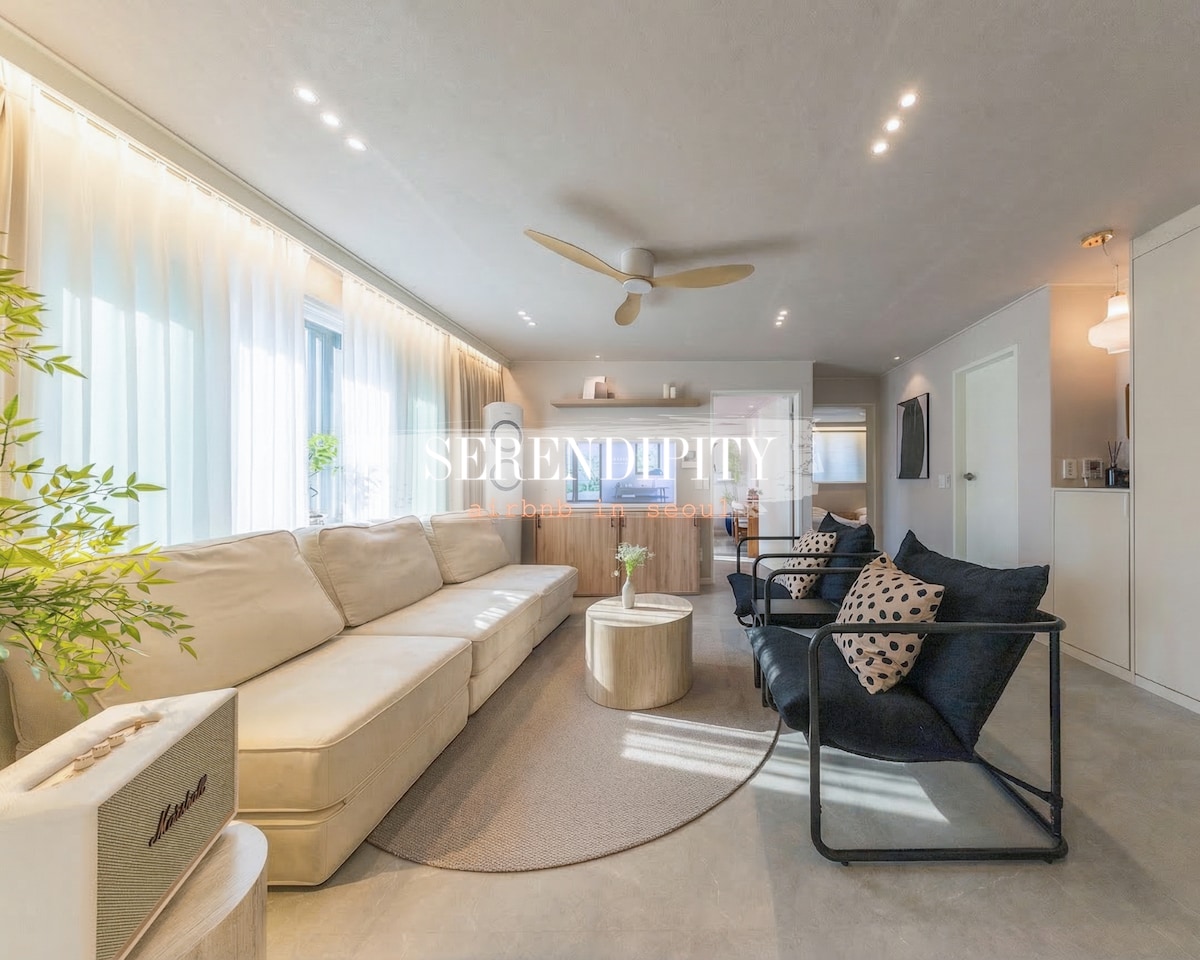 寬敞舒適的 3BR2BA/北漢山景天台/電梯/可容納 10 人/距地鐵 2 分鐘#明洞#東大門#南大門