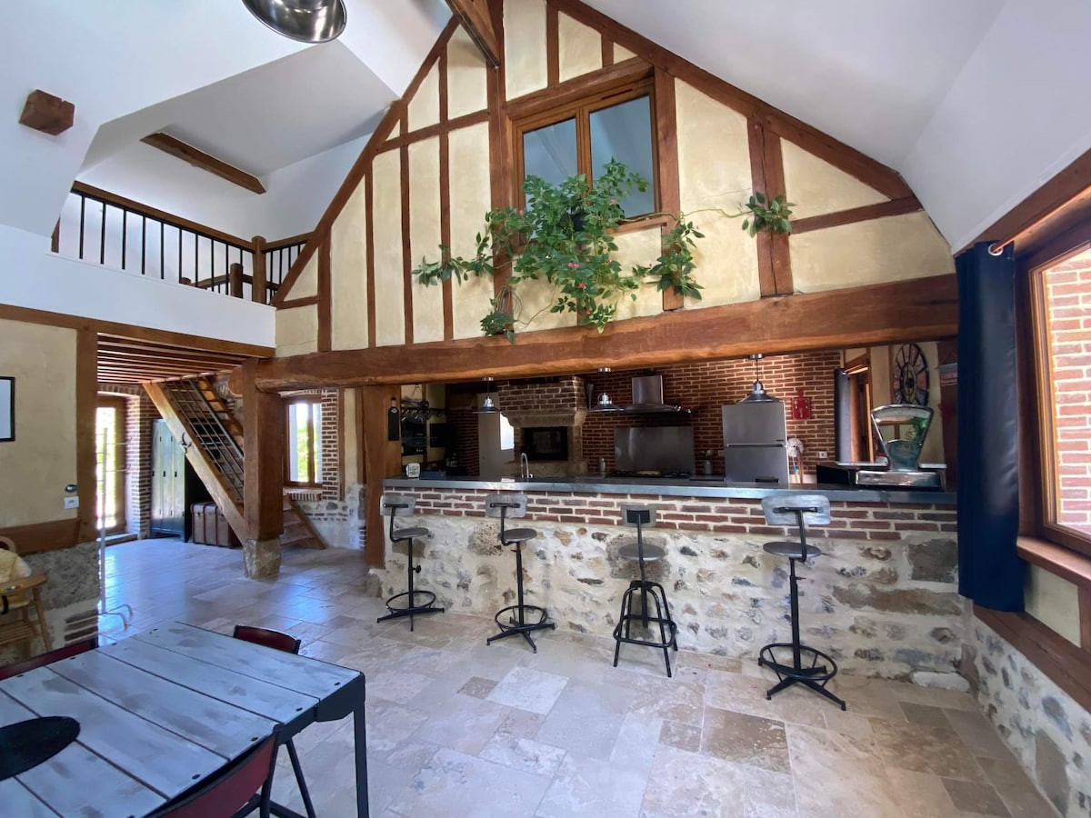 這間迷人的寧靜諾曼小屋為全家提供放鬆的住宿體驗,或是融合鄉村和森林,非常適合安靜和休息。 距離所有商店(游泳池、保齡球、火車站)7分鐘。 這棟房子有一個大客廳,可以舉辦各種活動,還有一公頃的土地,有法式滾球場和各種兒童遊戲。 距離巴黎1小時15分鐘,距離卡布爾1小時30分鐘。 可以在拉艾格爾車站接您。