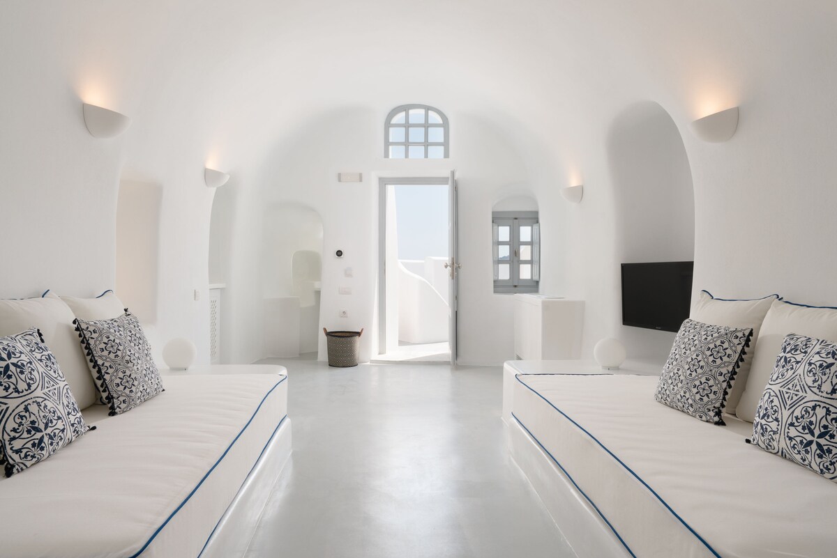 Oia Spirit位於伊亞的中心地帶,位於著名的聖托里尼火山口的僻靜位置,是一個由8間獨立傳統洞穴屋組成的時尚建築群,可使用共用洞穴泳池。 這間寬敞的套房設有私人室內跳水泳池,以及位於伊亞兩個標誌性藍色圓頂之間的露台。 聖托里尼國際機場距離Oia Spirit約17公里,渡輪港口距離約23公里。