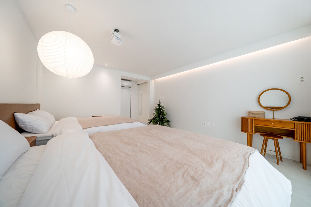 這是一間新開的家庭式3房7人住宿。 步行即可抵達機場鐵路「Unseo站」,因此前往仁川機場非常方便,靠近Inspire Resort和表演廳,因此觀看各種韓國音樂會/活動/節日後,您可以舒適地放鬆身心。 睡房1: 2張超級單人床 臥室2 :標準雙人牀 臥室3 :標準雙人牀 這是一個適合6人入住的優化空間,如果有6人或以上入住,我們會提供一張床墊。 [設備與服務] 廚房:設備齊全,配有微波爐、電熱水壺、咖啡機、燃氣爐、冰箱、冷熱水加熱器和電動電鍋 2間浴室:洗髮水/護髮素/沐浴露/洗手液/酒店提供40條毛巾/2個吹風機/直髮器 客廳:現代沙發和木桌/椅子,可容納6-8人,Netflix , YouTube已開放預訂 洗衣機、乾衣機