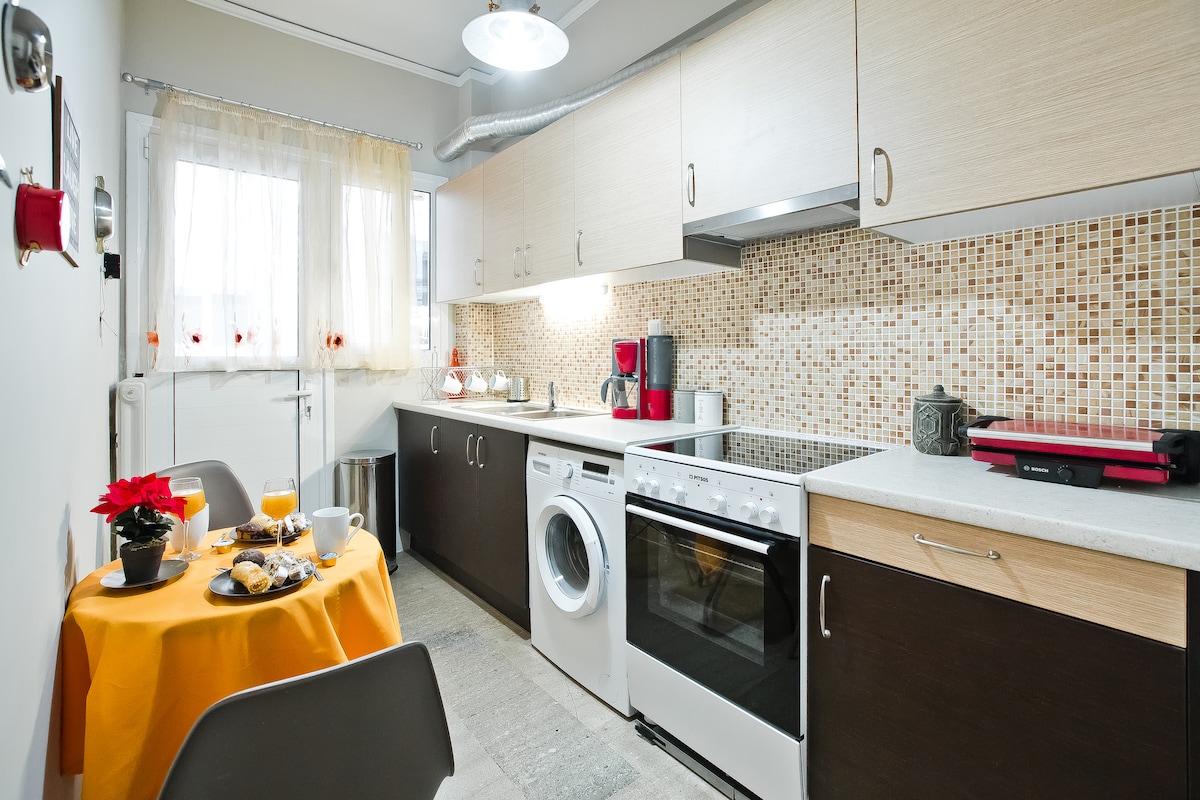 整套公寓面積58平方公尺,設備齊全,明亮,位於比雷埃夫斯市中心。它有一間臥室和一間客廳,配有空調和電視、廚房、浴室、陽臺和2張沙發床。距離電車站僅50公尺,距離地鐵站200公尺,非常靠近Zea Marina和Pasalimani ,那裡有許多餐廳和咖啡廳,非常適合您安靜入住。步行或乘坐公共交通工具幾分鐘即可抵達比雷埃夫斯中央港口。