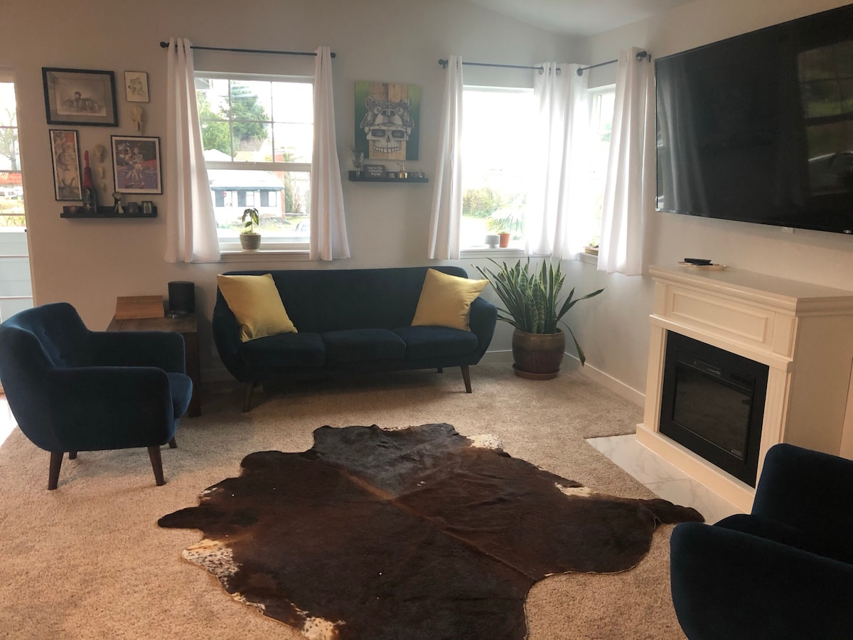 Experience the ultimate Pacific Northwest getaway in our stunning Shoreline retreat. With room for up to 10 guests, our 4-bedroom, 2.5-bathroom home is perfect for families or groups looking to escape the hustle and bustle of the city. Step inside and immerse yourself in mid-century modern luxury, with stylish furnishings and stunning decor at every turn. Enjoy the convenience of a Tesla charger, a gorgeous gated backyard with a fire pit, and a fully equipped kitchen. Book your stay today!