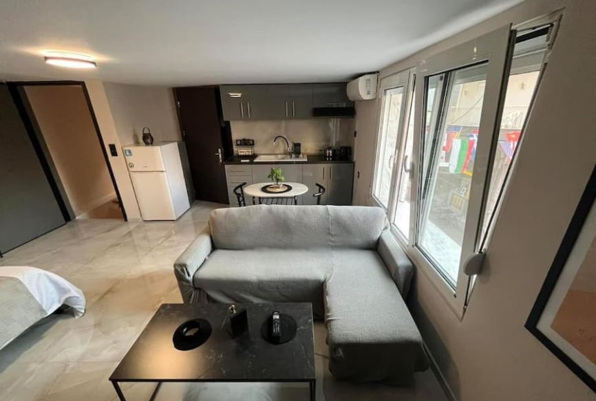 這是一套全新翻修的公寓,位於城市最中心的地區,在二樓,可從樓梯上下。寬敞、溫馨、現代,能夠讓您一見鍾情。它由一個開放式空間組成,包括客廳、廚房和帶解剖泡綿床墊的雙人床。優質沙發可變成床,空間可舒適容納 4 人。如果人數更多,房子還有另一間臥室。