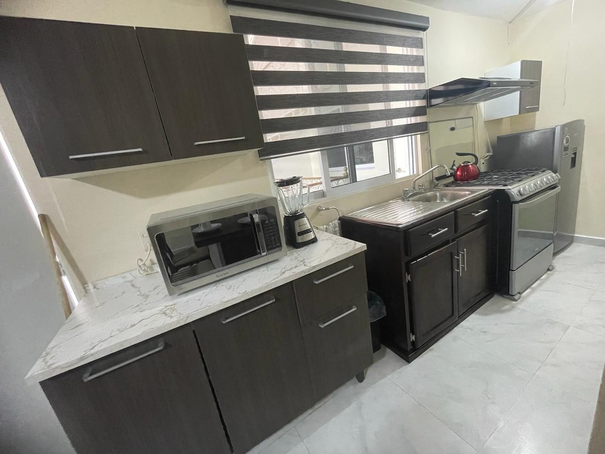 Bienvenidos a tu refugio de inspiración. Nuestro departamento combina comodidad y diseño minimalista y moderno en una ubicación ideal para una experiencia tranquila, segura y muy centrica. Disfruta de espacios cómodos y pensados para tu bienestar, creando una atmósfera perfecta para tu descanso y para la productividad. Relájate con un té o café cada mañana, o prepara un delicioso desayuno en nuestra cocina equipada. ¡Te esperamos para una estancia memorable!