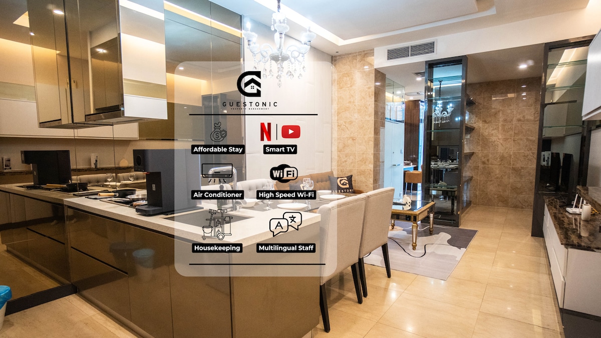 全新翻修的1800平方英尺3臥室現代公寓,位於吉隆坡購物區的中心。就在柏威年購物中心對面。物有所值,非常適合預算家庭。 主臥室: 1 張特大雙人床、1 張雙人沙發床(可選) ,附帶套房浴室 次臥室: 1 張特大床、1 張單人床(可選)附套房浴室 第 3 間臥室:1 張雙人床 第三間浴室是共用浴室。 步行10分鐘即可抵達KLCC、B.Bintang、Jalan Alor。 提供免費停車位。