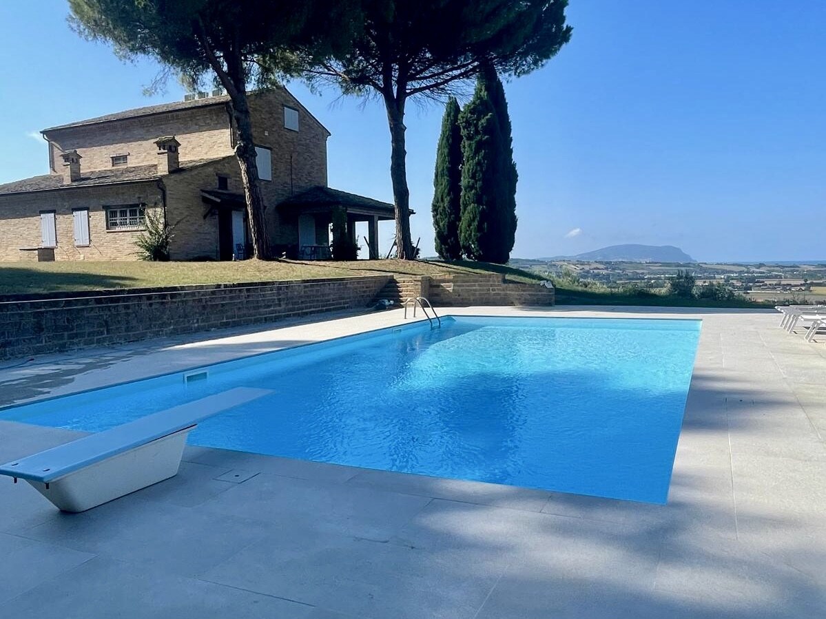 VILLA ADELE is an elegant residence nestled among the rolling hills of the Marche region, perfect for families and groups seeking nature, tranquility, and comfort. From the panoramic terrace and the pool, you can enjoy beautiful sunsets. The spacious interiors, fireplace, and professional kitchen make it ideal for moments of pure relaxation and well-being. PRIVACY AND EXCLUSIVE USE the villa is entirely for your exclusive use: you will not share any spaces with other guests.