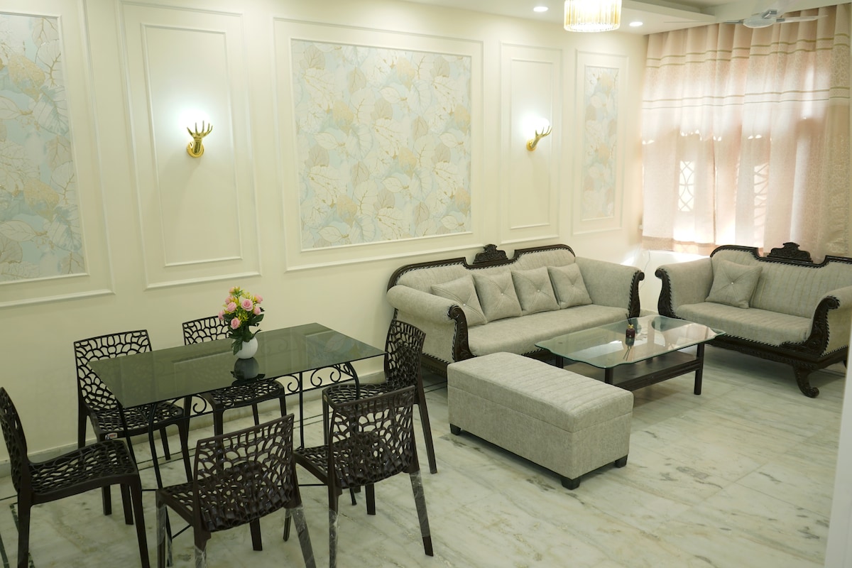 ⚠️「此旅居不會容納任何單身派對或類似派對。」 ✨ 寬敞的起居區域–毛絨座椅、溫暖的照明和智慧電視,營造舒適的氛圍。 ✨ 優雅的餐飲和工作角落–非常適合用餐或安靜的咖啡休息。 ✨ 現代室內裝潢–時尚的木質裝飾、獨特的藝術品和寧靜的氛圍。 ✨ 優越的地理位置–靠近Noida Sector 71地鐵、商場、咖啡館和商務中心。 ✨ 設備齊全– WiFi、空調和所有必需品,讓您輕鬆入住。 ✨ 非常適合度假。