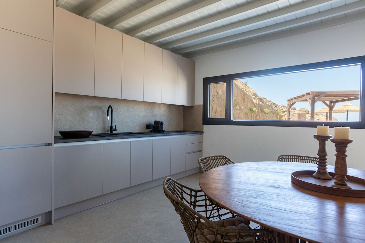 ✨Myconian Stylish Villa with Sunset Sea Views✨ Minimal, stylish, spacious 220Sq.m villa with private Infinity pool Features: 🛏️3* Master Bedrooms(Queen Beds) 🛏️2* Master Bedrooms(Queen Beds) and sofa beds 🛏️1* Master Bedroom(Twin Beds/King) 🚿5.5 Bathrooms 🧑🤝🧑12 guests Outdoor Amenities: 🏊♂️50 Square meters private infinity pool with Aegean Sea views 🍖BBQ and Outdoor Dining: Perfect for alfresco meals and gatherings. 🛋️Open-plan living area offering tranquility and seclusion