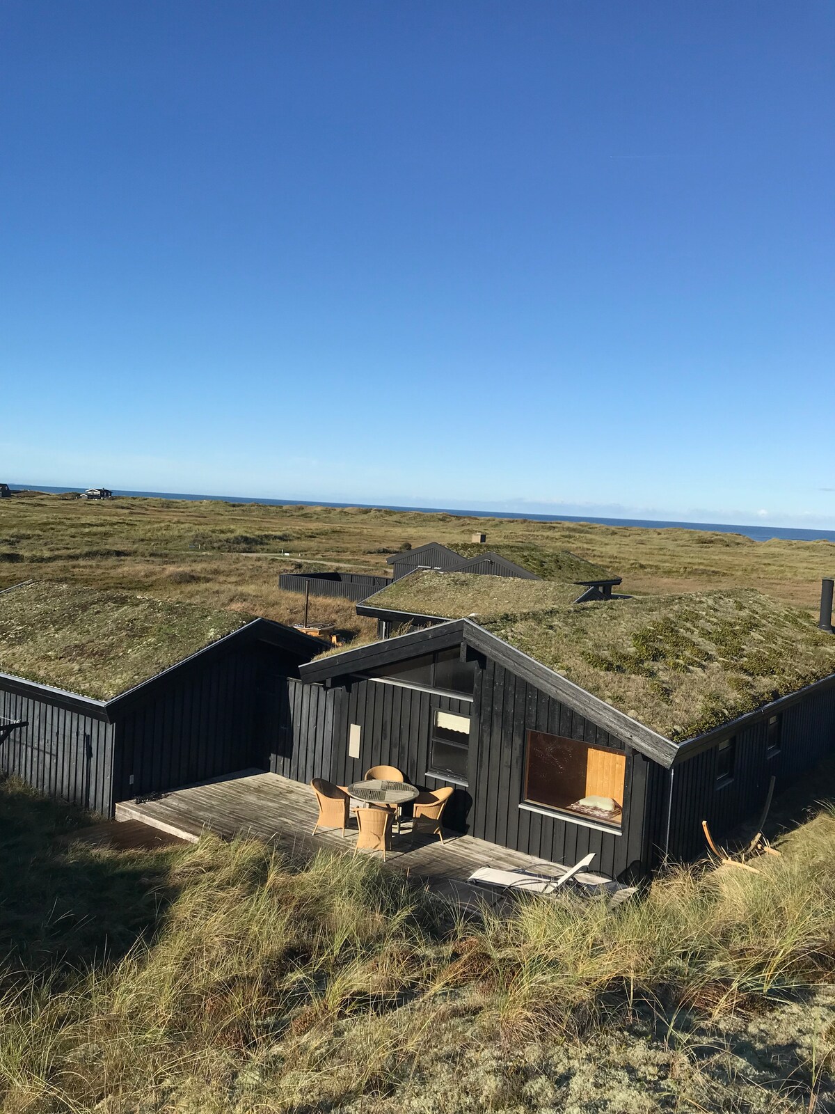 這座120平方米的獨特度假屋距離波濤洶湧的北海僅幾分鐘步行路程,隱藏在高高的沙丘中,從道路上只能隱約看到。在最高的沙丘上,有一張長凳,可以欣賞大海和日落的美景。您可以在那裡喝杯咖啡或葡萄酒。 開車前往海濱小鎮Blokhus僅11公里,距離Løkken僅15公里,步行或騎自行車通過該地區的小徑更短。此外,如果您喜歡騎山地自行車或徒步旅行,這是一個很棒的區域。
