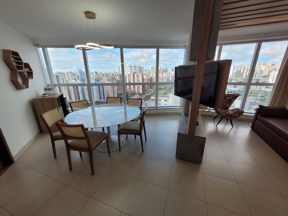 Luxuoso apartamento com vista panorâmica e acesso direto ao DF Plaza Shopping. Quarto com cama queen, sala com cama-sofá e Smart TV 60", cozinha e banheiro completos. Localização privilegiada: restaurantes, supermercados e metrô próximos. Condomínio com piscina infinita, academia, espaço de trabalho e mais. Wi-Fi rápido, estacionamento privativo e segurança 24h. Ideal para casais, profissionais e turistas exigentes. Ambiente tranquilo. Experimente o melhor com conforto e sofisticação.